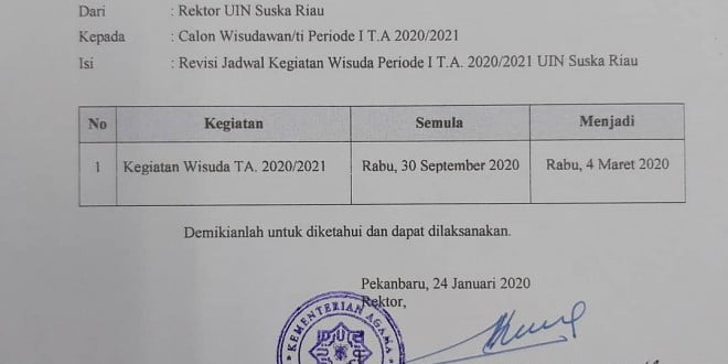 Diberitahukan kepada Seluruh calon Wisudawan/ti Periode I Tahun Akademik 2020/2021 bahwa kegiatan Wisuda yang semula akan dilaksanakan pada Rabu, 30 September 2020, akan dipercepat menjadi Rabu, 4 Maret 2020. Terimakasih Post Views: 63,467
