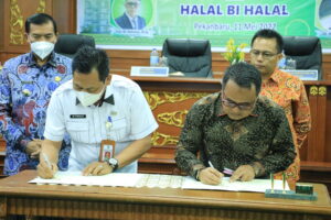 uin-suska.ac.id UIN Suska Riau menjadi salah satu universitas yang mendukung pemerintah kota Pekanbaru dalam menopang sektor unggulan Kota Pekanbaru. Hal ini diwujudkan dalam nota kesepahaman yang ditandatangani oleh Rektor UIN Suska Riau, Prof. Dr. Khairunas Rajab, MA dan Walikota Pekanbaru, Dr. Firdaus, ST., MT dan dilanjutkan dengan penandatanganan MoA oleh Dekan Fakultas Pertanian dan Peternakan UIN Suska Riau, Dr. Arsyadi Ali, S.Pt, M.Agr.Sc dan Kepala Dinas Pertanian dan Kesehatan hewan Kota Pekanbaru, M. Firdaus, Rabu (11/05/2022).
