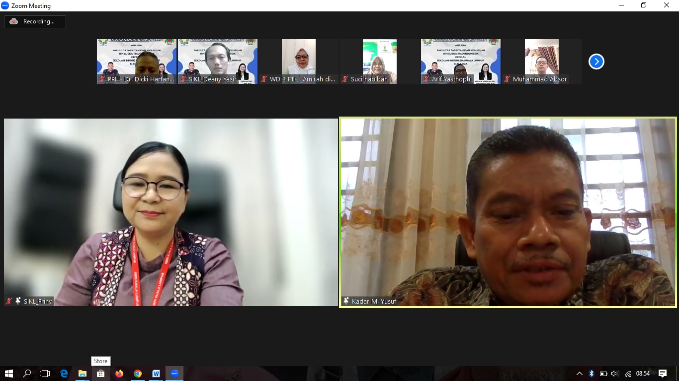 uin-suska.ac.id Fakultas Tarbiyah dan Keguruan (FTK) UIN Suska Riau kembali bangun kerjasama dalam bentuk Memorandum of Agremeent (MoA) di luar Negeri, yakni dengan Sekolah Indonesia Kuala Lumpur (SIKL). Kegiatan yang dilaksanakan pada Jum’at, (24/02/2023) berlangsung secara virtual dan dihadiri oleh Dekan FTK Dr. Kadar, M.Ag, Wakil Dekan I dan III, Ketua Prodi di Lingkungan FTK, Pengelola Praktek Pengalaman Lapangan (PPL) dan Pranata Humas, semetara itu dari SIKL tampak hadir Kepala Sekolah Friny Napasti, S. Pd, M. Pd, Wakasek Humas, Wakasek Kurikulum SMA dan Kepala Tata Usaha. Setelah penandatangan MoA ini akan dilanjutkan penandatanganan MoU dengan pihak Universitas.