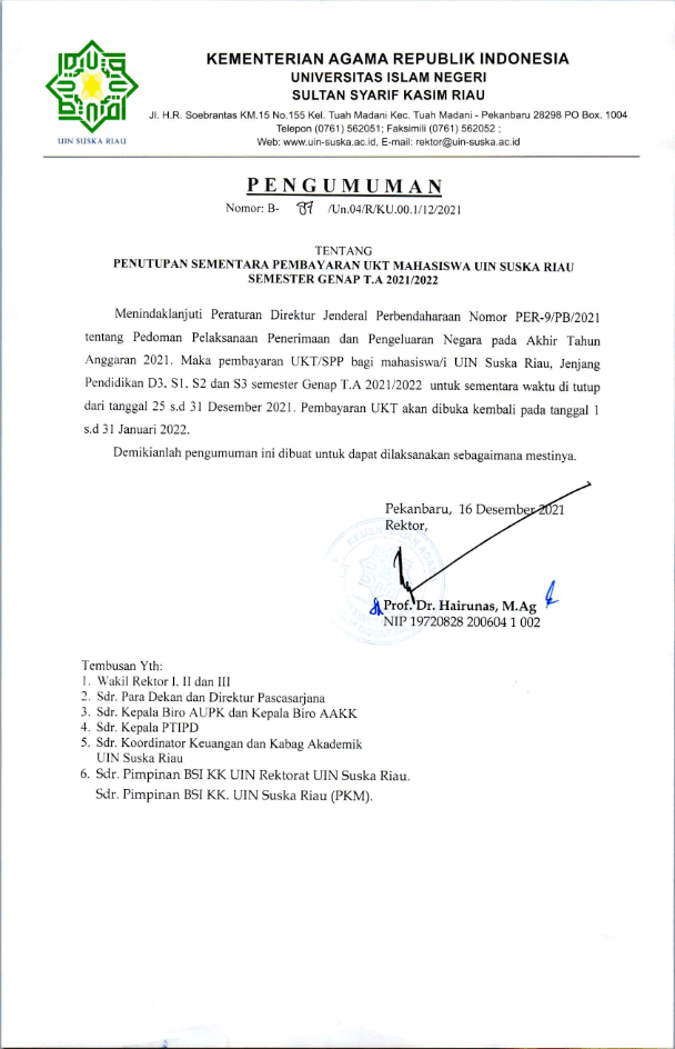 Literasi Digital Tridharma Perguruan Tinggi terus kita tingkatkan melalui WEB SITE UIN Suksa Riau, dengan satu tujuan agar menjadikan UIN Suska sebagai UIN yang siap dalam memiliki literasi digital untuk kegiatan Tridharma Perguruan Tinggi, sehingga kedepan jika perkuliahan masih tidak memungkinkan secara offline dalam jangka waktu yang tidak ditentukan maka UIN Suska Riau telah siap...Read More