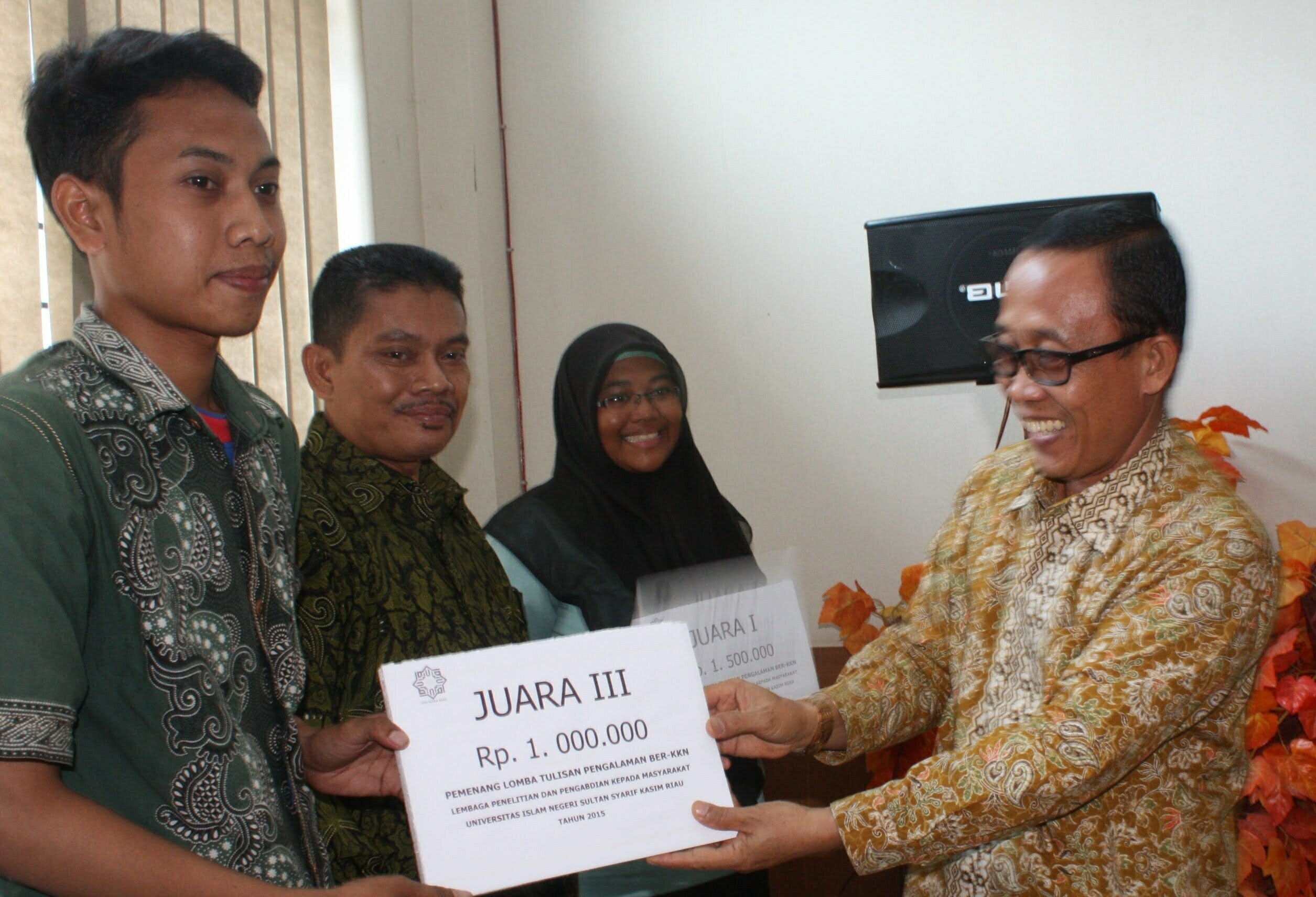 uin-suska.ac.id – Tahun 2015 lalu, Lembaga penelitian dan Pengabdian Masyarakat (LP2M) UIN Suska Riau, untuk pertama kalinya menggelar lomba karya tulis ber-KKN (kuliah Kerja Nyata). Lomba ini dikhususkan bagi mahasiswa yang mengikuti KKN di berbagai wilayah, baik KKN regular, maupun KKN kebangsaan. Pengumuman dan penyerahan hadiah dilaksanakan di ruang rapat pimpinan LP2M gedung Islamic Center...Read More