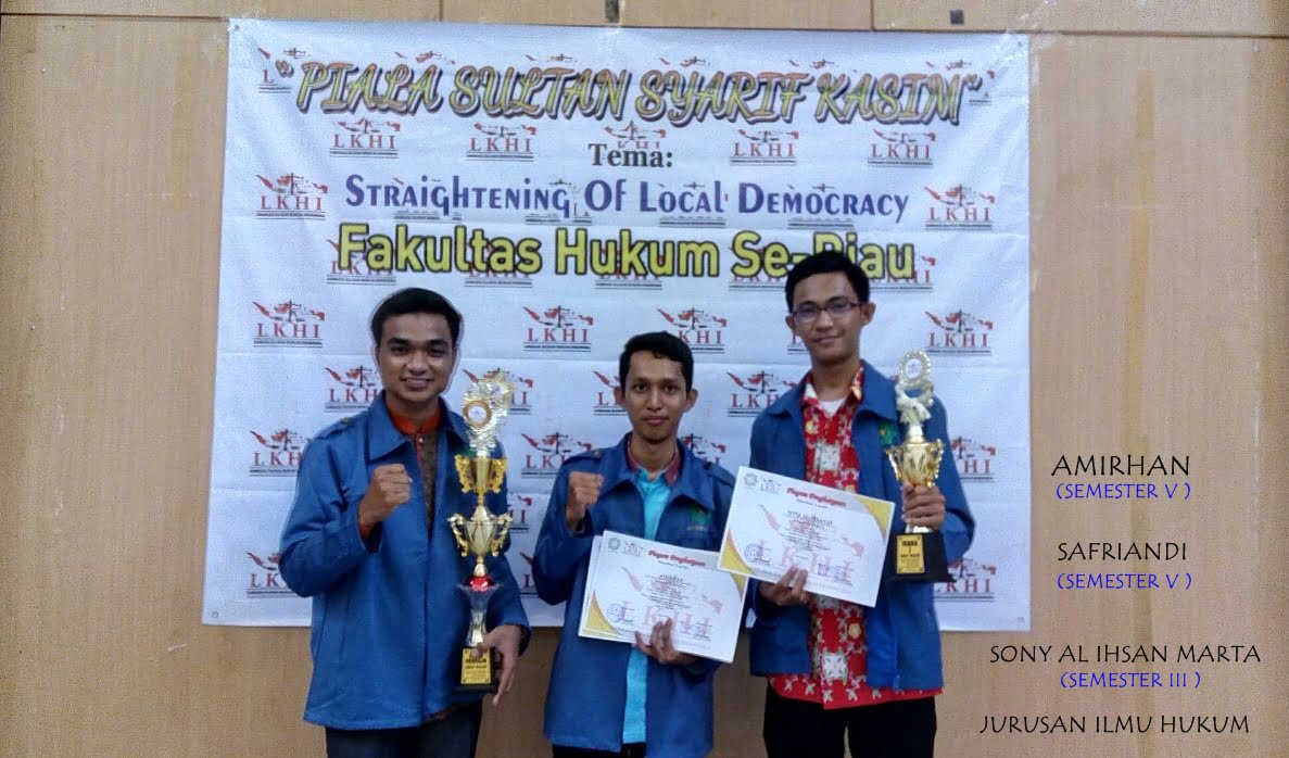 uin-suska.ac.id – Generasi muda UIN Suska Riau raih prestasi tingkat provinsi pada 28 Maret 2017, tiga mahasiswa Fakultas Hukum Amirhan dan Safriandi dari semester lima, Juga Soni Alihsan Marta dari semester tiga, dimana ketiga mahasiswa jurusan Ilmu Hukum ini berhasil menyandang tingkat pertama lomba debat yang diadakan di UIN Suska Riau tepatnya digedung Islamic Center. Lomba...Read More
