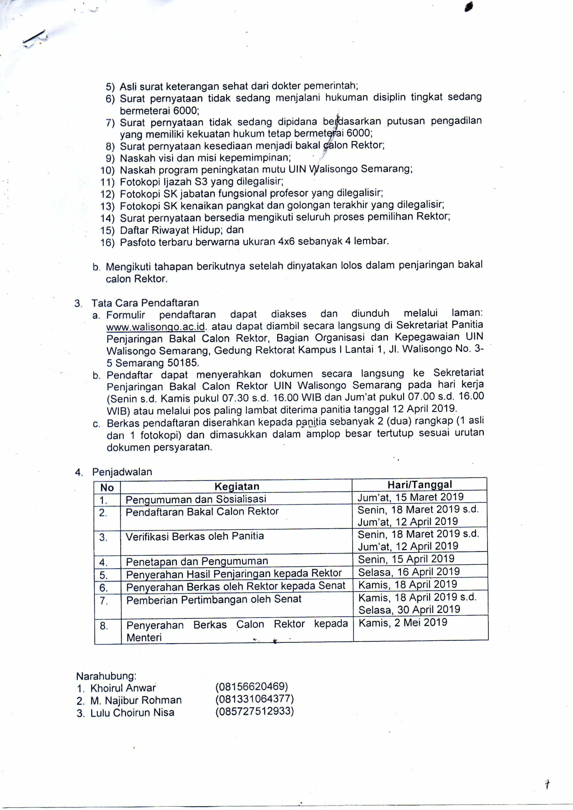 Diberitahukan kepada Dosen di Lingkungan UIN Suska Riau bahwa Universitas Islam Negeri Walisongo Semarang sedang mengadakan Penjaringan Bakal Calon Rektor Periode Tahun 2019-2023. Adapun persyaratan dan Jadwal tahapan penjaringan Bakal Calon Rektor bisa diakses melalui www.walisongo.ac.id Read More
