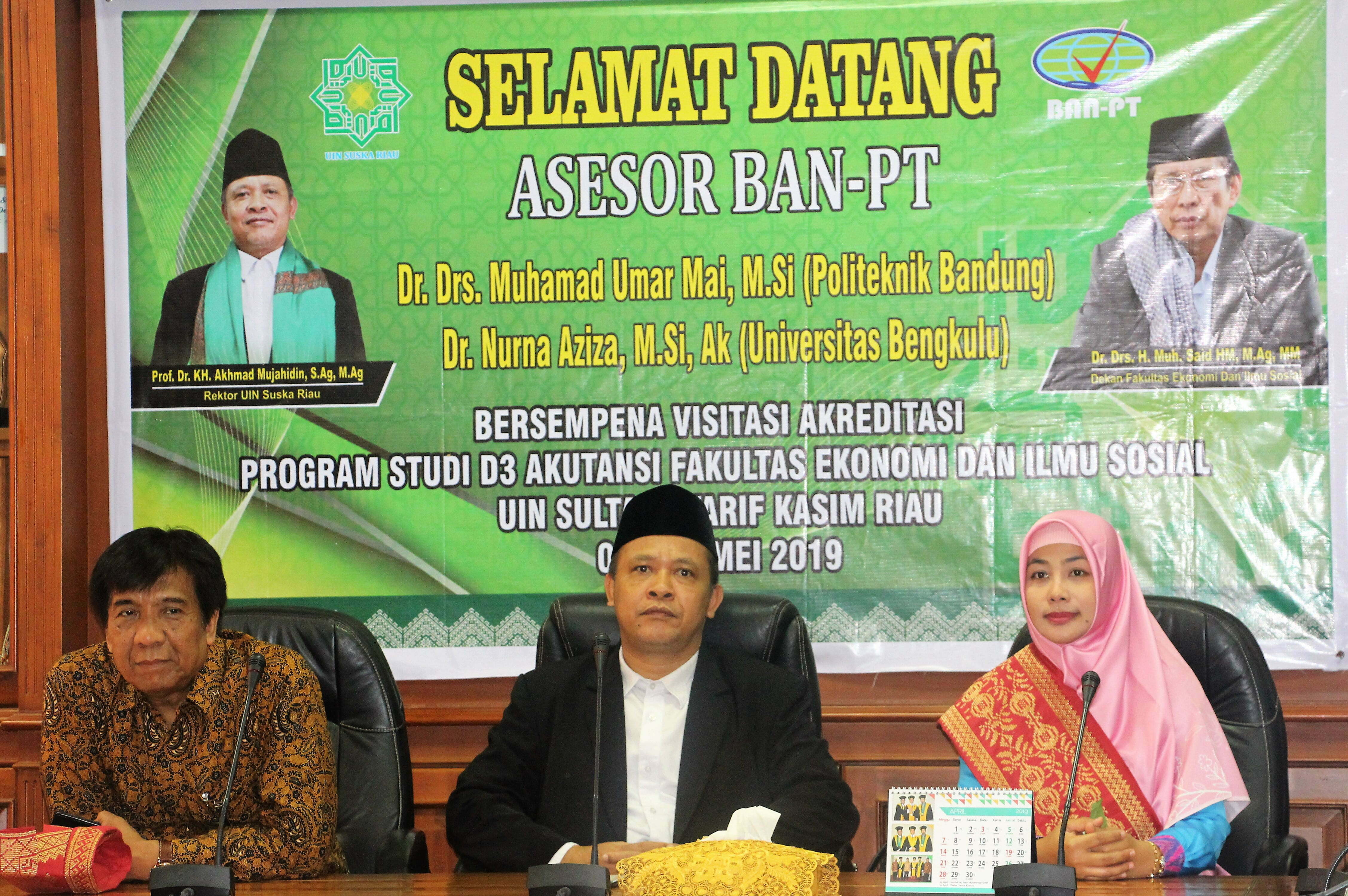 uin-suska.ac.id Tim Asesor Badan Akreditasi Nasional Perguruan Tinggi (BAN- PT) lakukan Asesmen Lapangan (AL) Program Studi Akuntansi Diploma Tiga (D3) Fakultas Ekonomi dan Ilmu Sosial (FEIS) Universitas Islam Negeri (UIN) Sultan Syarif Kasim Riau, hari ini, Jumat (10/5/2019). Dua orang asesor yang melaksanakan AL adalah Dr. Drs. Muhamad Umar Mai, M.Si dari Politeknik Bandung dan...Read More