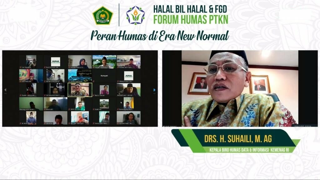 Forum Humas Perguruan Tinggi Keagamaan Negeri (PTKN) harus siap beradaptasi dengan kondisi new normal atau normal baru. Dalam situasi dan kondisi pandemi Covid-19, peran humas sangat dibutuhkan. Demikian seperti disampaikan Kepala Biro (Karo) Humas Data dan Informasi (HDI) Kementerian Agama Drs Suhaili MAg saat halal bihalal dan Focus Group Discussion (FGD) dengan Forum Humas PTKN secara virtual, Rabu (10/6/2020)....Read More