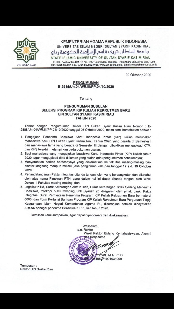 uin-suska.ac.id Universitas Islam Negeri Sultan Syarif Kasim (UIN Suska) Riau selalu berupaya memberikan layanan akademik dan non-akademik dengan sungguh-sungguh di masa pandemi Covid-19. Salah satu layanan akademik yang dilakukan yaitu pelaksanaan Kuliah Umum secara virtual menandai dimulainya perkuliahan semester ganjil tahun akademik 2020/2021 oleh Fakultas Psikologi UIN Suska Riau, Selasa (13/10/2020). Kuliah Umum via aplikasi...Read More