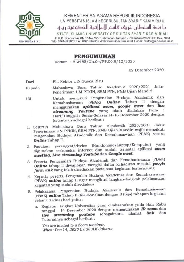 uin-suska.ac.id kuliah umum Fakultas Tarbiyah dan Keguruan (FTK) UIN Suka Riau agak sedikit terlambat dari biasanya. Kegitan yang seharusnya di lakukan pada awal pekuliahan atau awal semester tapi baru di lakukan sekarang akibat situasi pandemi yang terjadi hingga saat ini. Kuliah umum FTK di laksanakan kamis (03/12/2020) dilakukan secara virtual dengan tema ‘Khazanah Keagamaan Nusantara...Read More