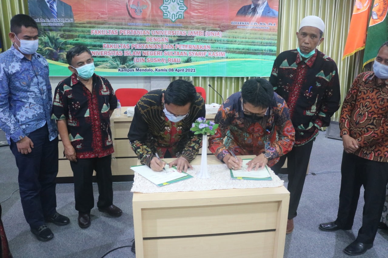 uin-suska.ac.id Untuk pengembangan institusi dan melaksanakan Tri Dharma Perguruan Tinggi, Fakultas Pertanian dan Peternakan (Fapertapet) UIN Suska Riau menjalin kerjasama dengan berbagai institusi di luar Provinsi Riau. Kali ini rombongan Fapertapet UIN Suska Riau lakukan penandatanganan Momerandum of Agreement (MoA) di provinsi Jambi dengan dua institusi yang berbeda. Kegiatan dilaksanakan pada Kamis, (08/04/2021) di Fakutas...Read More
