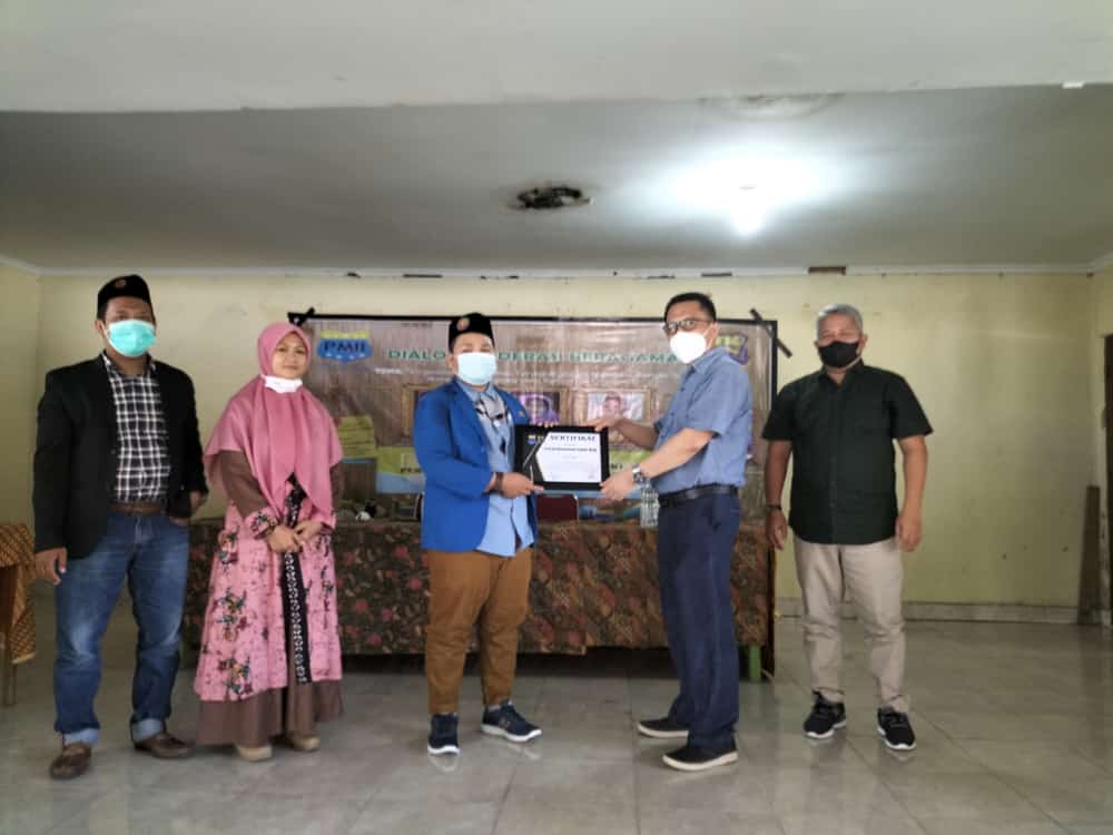 uin-suska.ac.id Pekanbaru, Rektor UIN Suska Riau, Prof. Dr. KHairunas Rajab, M.Ag hadir sebagai pemateri dalam Dialog Moderasi beragama yang ditaja oleh Pergerakan Mahasiswa Islam Indonesia ( PMII ) dan Pemateri kedua Dr. Mustiqowati Ummul Fithiriyyah, M.Si beliau adalah Dosen UIN Suska Riau dan pemateri ketiga Wakil Ketua PW Anshor Riau Taufiqul Ulum, kegiatan ini bertema Organisasi Mahasiswa Terdepan dalam Membela Bangsa dan Menegakkan Agama yang Rahmatan Lil’alamin. PMII ini dilaksanakan di aula Kantor Lurah Simpang Baru Kecamatan Tampan Pekanbaru secara luring dengan menerapkan Protokol Covid-19 secara ketat pada hari Minggu (6/6/2021).