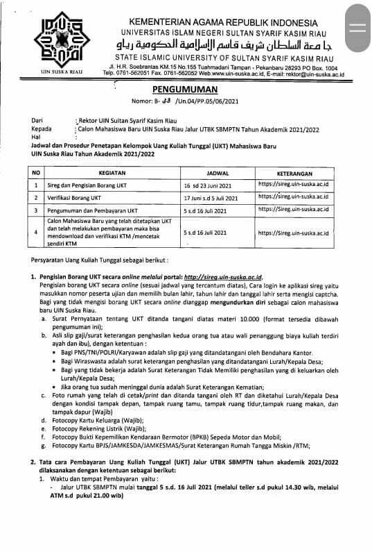 Assalaamu’alaikum Wr. Wb. ( Untuk Mahasiswa UIN Suska Riau ) Untuk peningkatan kualitas layanan dan kemudahan transaksi, bersiaplah untuk melakukan migrasi rekening BRIsyariah dan BNI Syariah Bapak/Ibu ke Rekening Bank Syariah Indonesia (BSI) pada periode tanggal 14 Juni sd 30 Juni 2021 di seluruh Kantor Cabang BSI terdekat di Wilayah Sumatera. Kami juga menginformasikan kepada...Read More