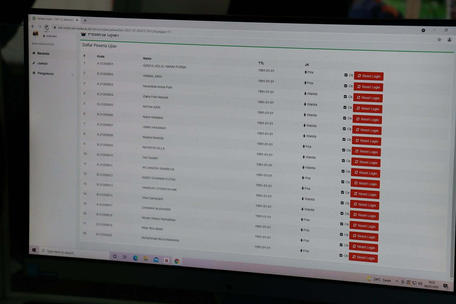 uin suska.ac.id Universitas Islam Negeri Sultan Syarif Kasim Riau (UIN Suska Riau) kembali menggelar pelaksanaan ujian CAT(Computer Assist Test) Mandiri tahun akademik 2021/2022, hari selasa tanggal 6 Juli 2021. Sama seperti hari pertama,dihari kedua ini peserta yang mengikuti CAT(Computer Assist Test) Mandiri berjumlah 880 orang yang dibagi menjadi 4 sesi, dan 1 sesi berdurasi 60...Read More