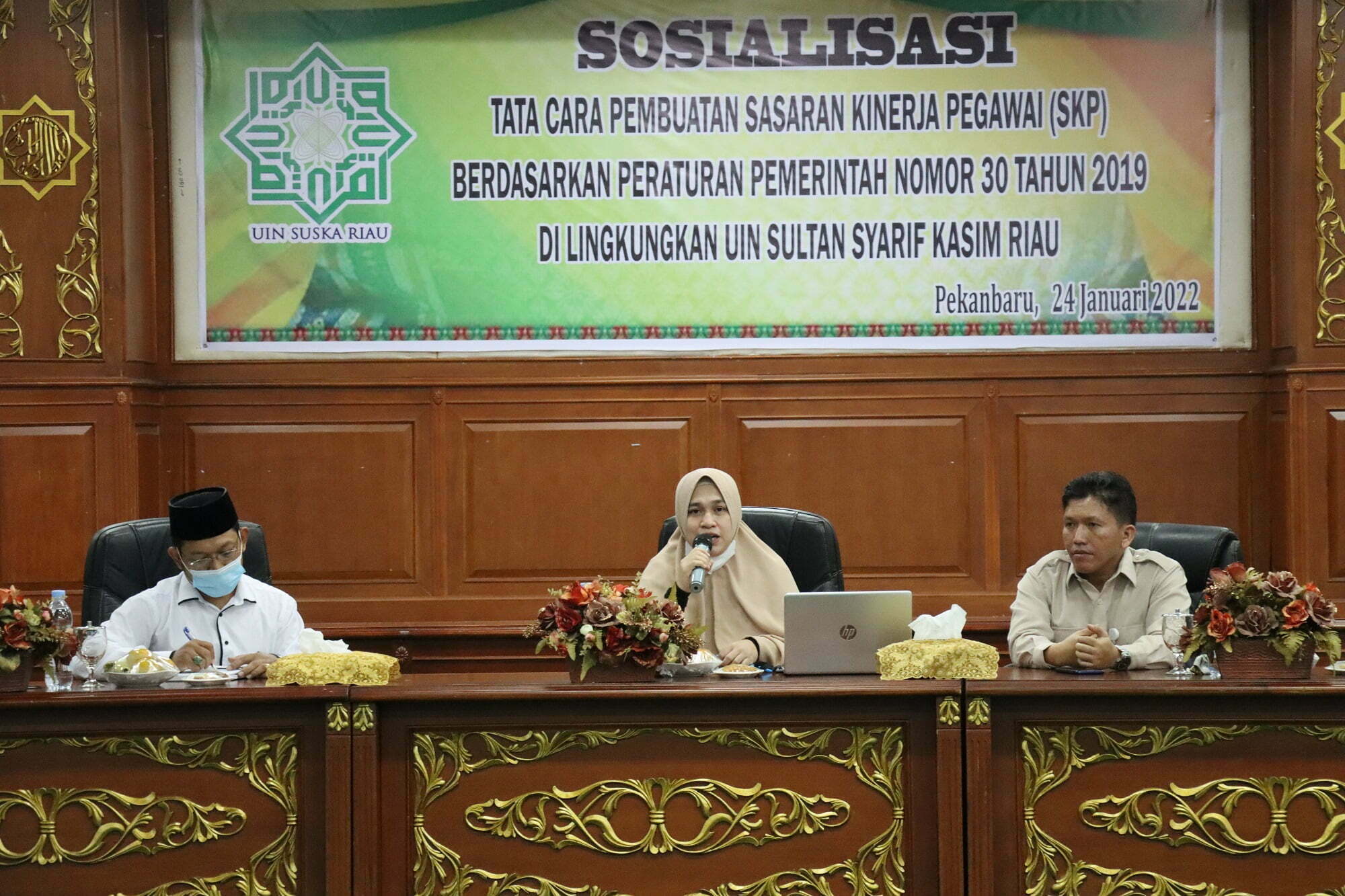 uin-suska.ac.id UIN Suska Riau taja kegiatan Sosialisasi Tata Cara Pembuatan Sasaran Kinerja Pegawai (SKP) berdasarkan PP No. 30 Tahun 2019 dengan mendatangkan narasumber dari Kantor Regional (Kanreg) XII BKN Pekanbaru, Senin (24/01/2022). Kegiatan yang dilaksanakan di Auditorium Lt. V Gedung Rektorat ini bertujuan untuk menyamakan persepsi dalam pembuatan SKP yang benar dan untuk memahami indikator-indikator penilaian...Read More