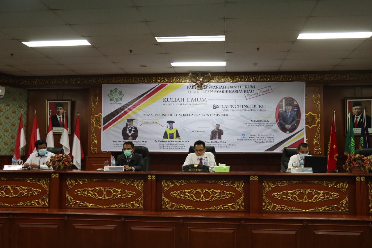 uin-suska.ac.id Fakultas Syariah dan Hukum UIN Suska Riau pada Senin (14/03/2022) bertempat di gedung rektorat lantai V menyelenggarakan kegiatan kuliah umum dengan tema “Isu-Isu Hukum Keluarga Kontemporer” yang di ikuti sebanyak 150 Mahasiswa secara luring dan 1800 mahasiswa secara daring melalui aplikasi zoom sekaligus ditayangkan live di youtube Official UIN Suska Riau.
