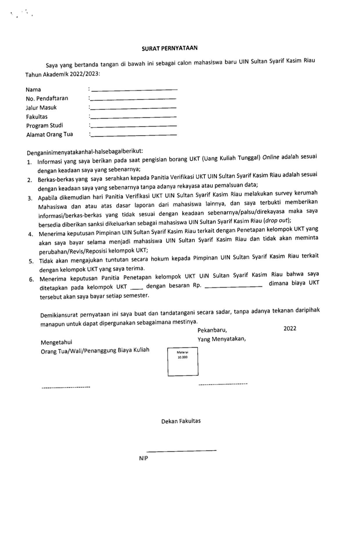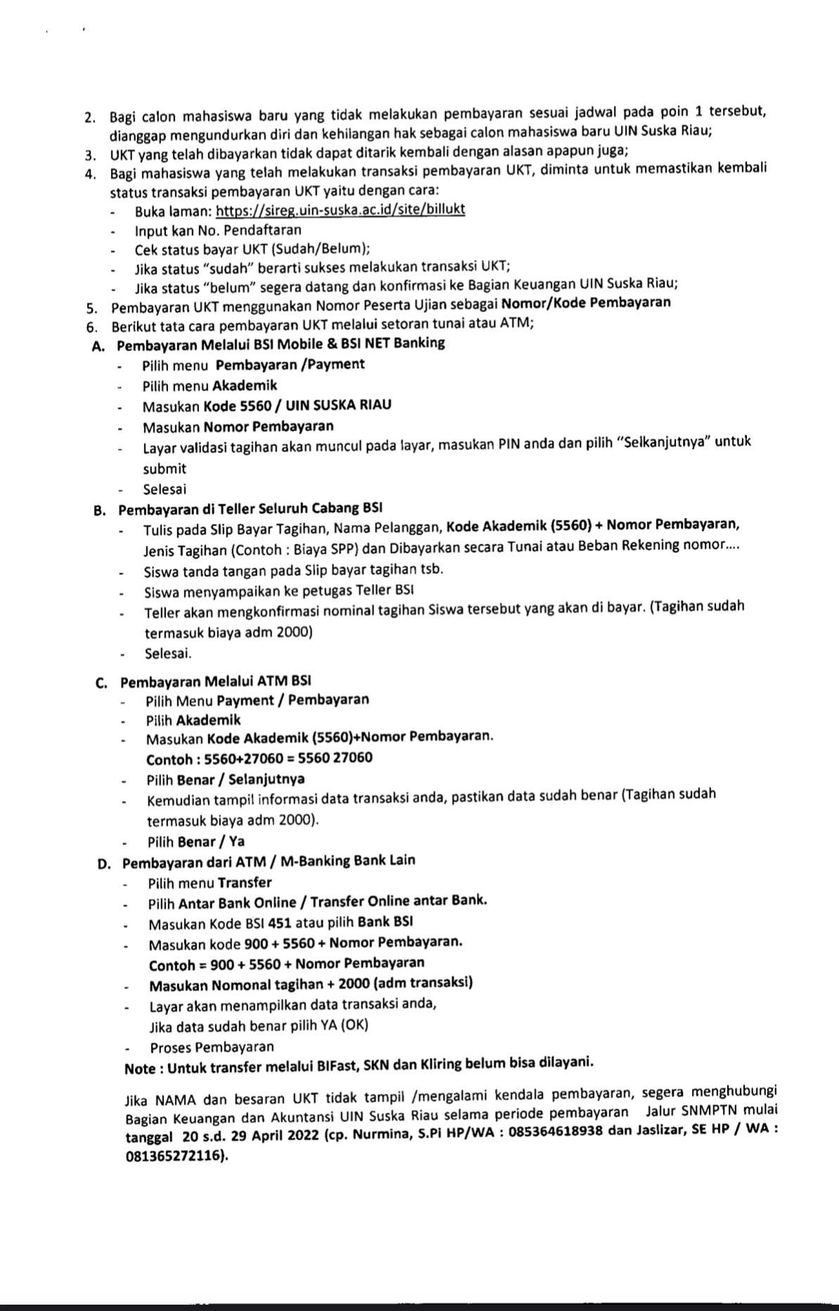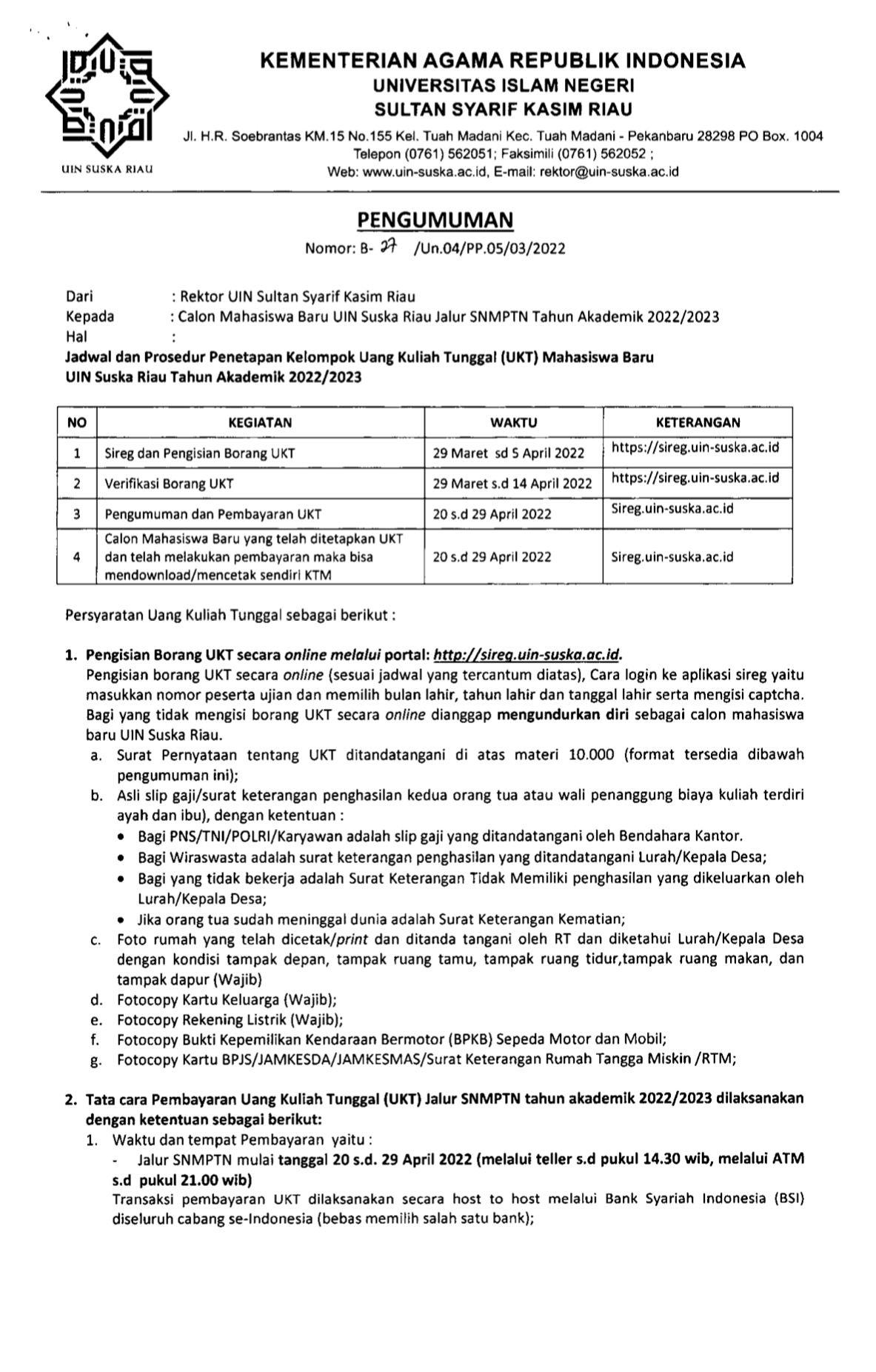 Jadwal dan Prosedur Kelompok Uang Kuliah Tunggal (UKT) Mahasiswa Baru UIN Suska Riau Tahun Akademik 2022/2023