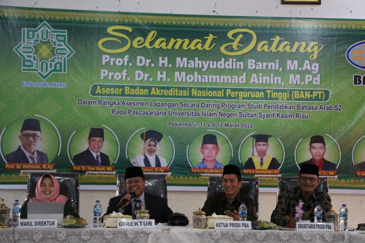 uin-suska.ac. id Prodi Pendidikan Bahasa Arab Pascasarjana (S2) melaksanakan Asesmen Lapangan secara daring melalui aplikasi zoom yang dilaksanakan selama 2 hari Jum’at s.d Sabtu tanggal 11 s.d 12 Maret 2022, bertempat di ruang Munaqosah Gedung Pasca Sarjana UIN Suska Riau, dengan tim Asesor dari Badan Akreditasi Nasional Perguruan Tinggi ( BAN-PT) yaitu Prof. Dr. H. Mahyuddin...Read More