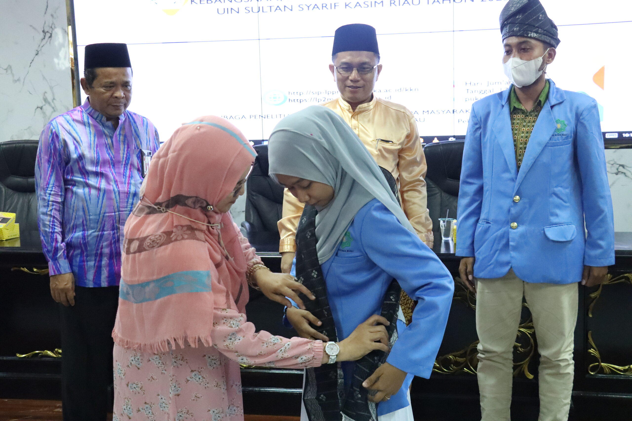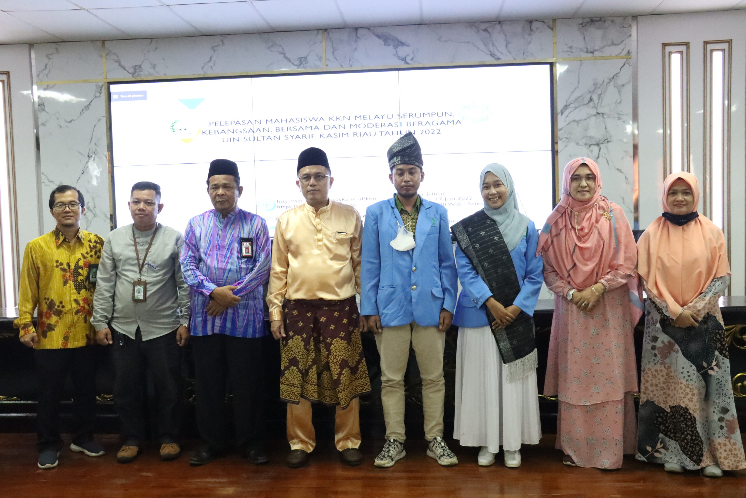 uin-suska.ac.id Jum’at 17/06/2022 Lembaga Penelitian dan Pengabdian Kepada Masyarakat (LP2M) UIN Suska Riau menggelar acara pelepasan mahasiswa KKN Melayu Serumpun, Kebangsaan, Bersama dan Moderasi Beragama UIN Suska Riau tahun 2022. Acara digelar di ruang rapat senat lantai V gedung Rektorat UIN Suska Riau.