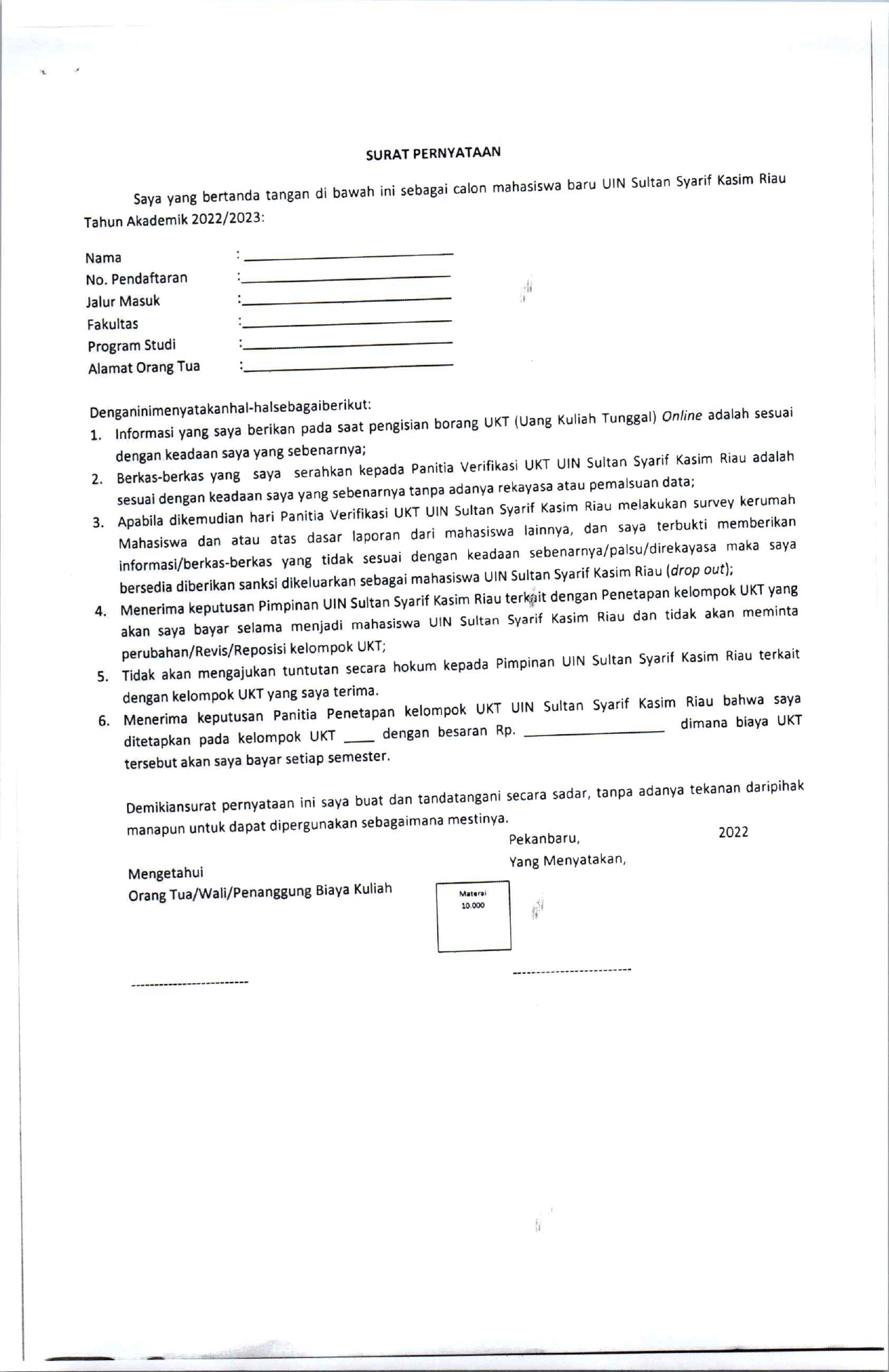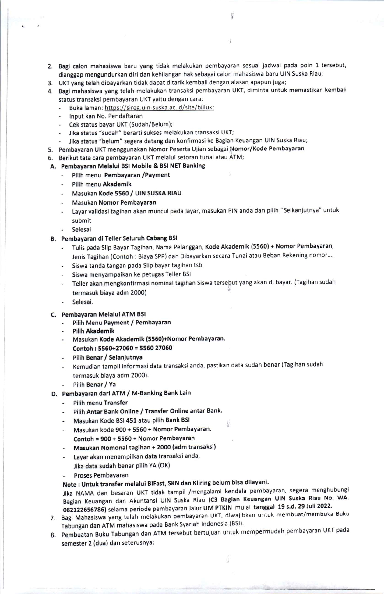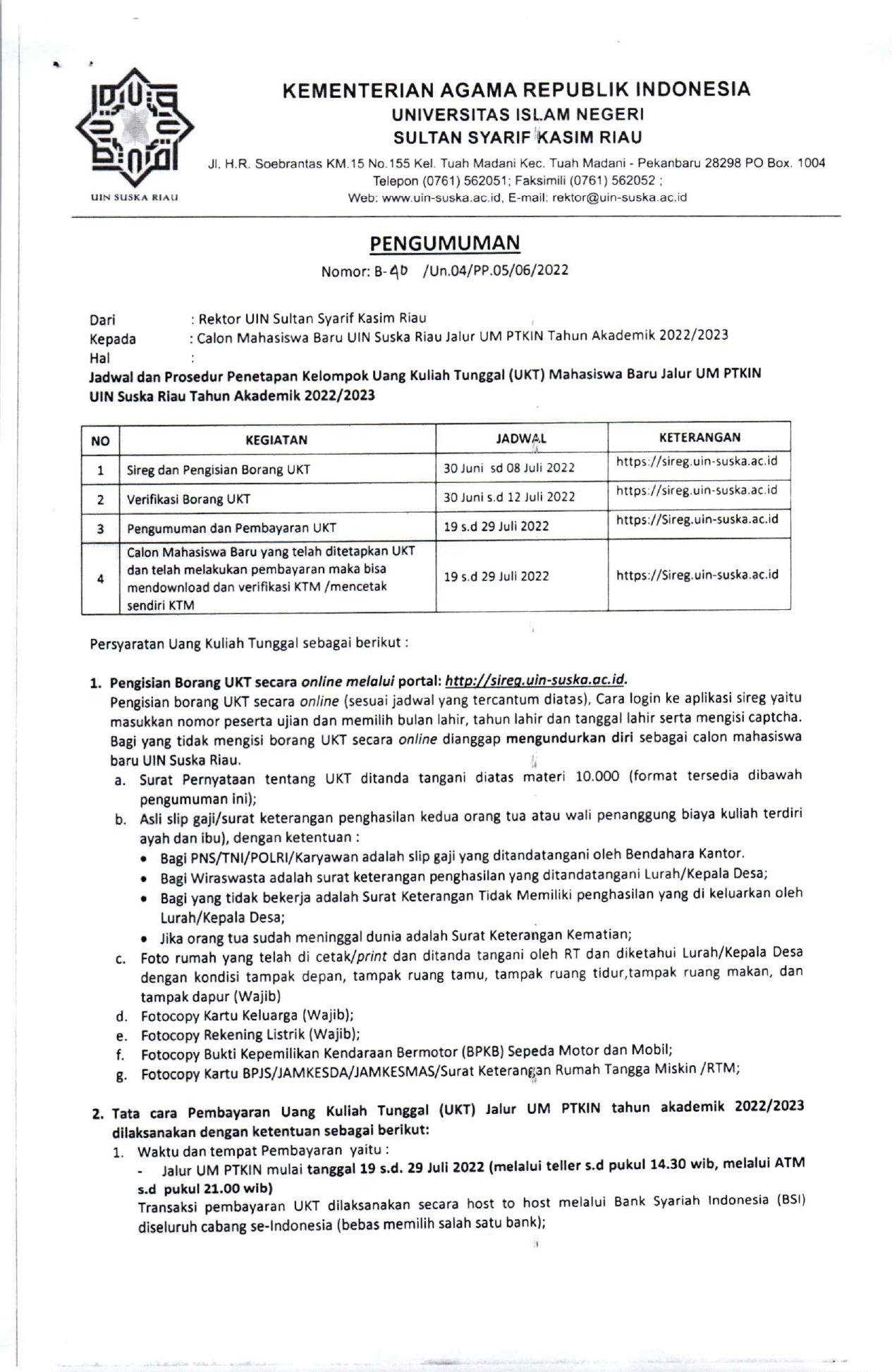 Jadwal dan Prosedur Penetapan Uang Kuliah Tunggal (UKT) Mahasiswa Baru UM PTKIN UIN Suska Riau Jalur Akademik 2022/2023