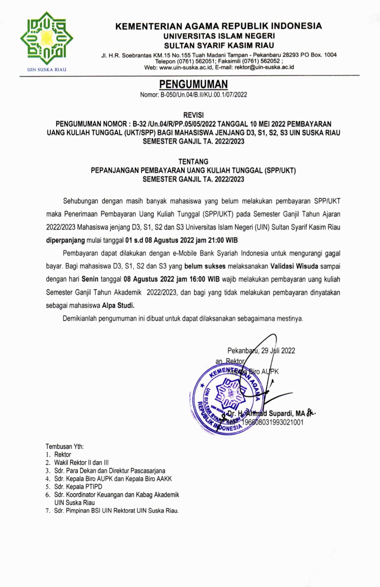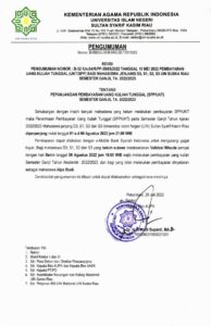 Selengkapnya Silahkan download di sini : PENGUMUMAN PERPANJANGAN UKT SMT GANJIL 2022-2023 Post Views: 702