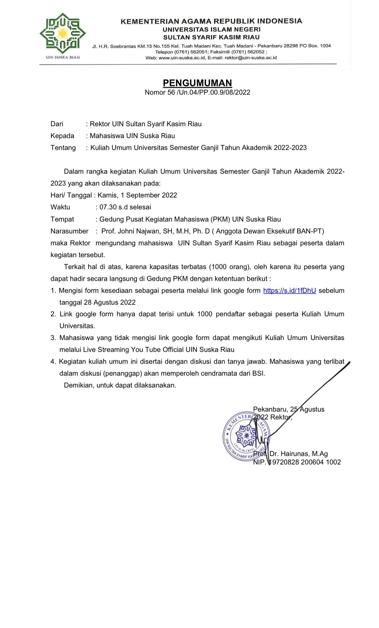 Kuliah Umum Universitas Semester Ganjil Tahun Akademik 2022-2023