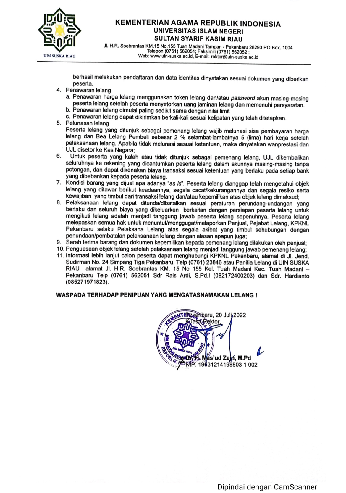 PENGUMUMAN LELANG KENDARAAN DINAS 2022