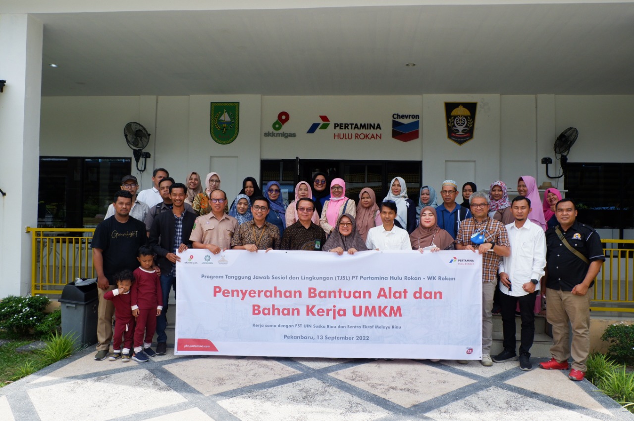 uin-suska.ac.id “Semua usaha besar, dimulai dari usaha yang kecil,” demikian ungkapan Dr. Hartono, M.Pd., Dekan Fakultas Sains dan Teknologi (FST) UIN Sultan Syarif Kasim (Suska) Riau di Gerai Lembaga Adat Melayu Riau (LAMR), Selasa 13 September 2022. Hartono menyampaikan hal tersebut saat memberi sambutan dalam acara Penyerahan Bantuan Alat dan Bahan kerja kepada 21 UMKM di Provinsi Riau. Bantuan tersebut didanai oleh PT Pertamina Hulu Rokan (PHR), mitra Kerjasama FST.