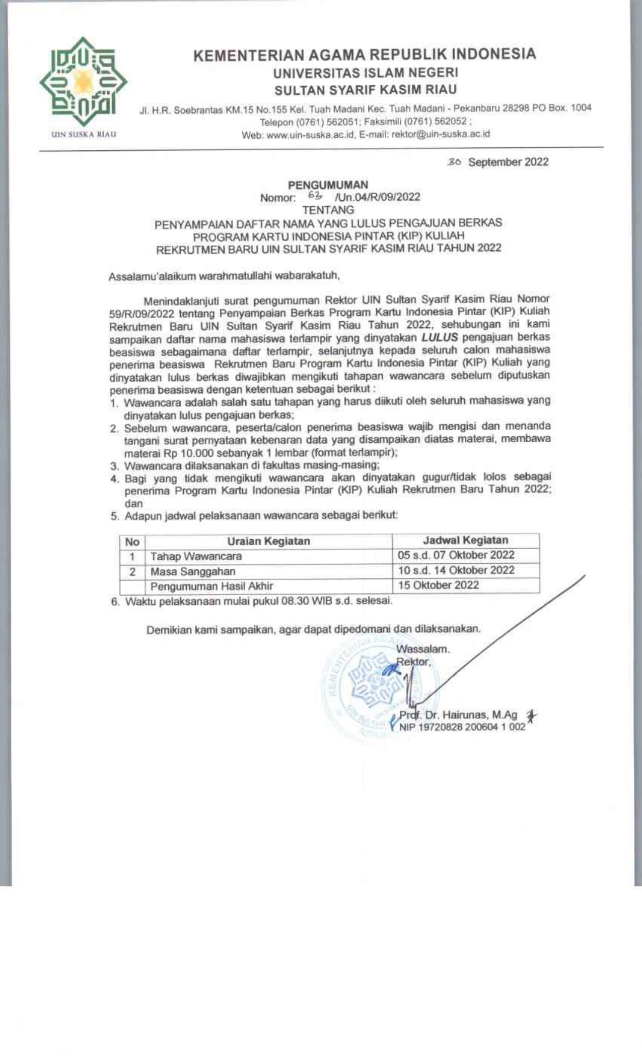 Silahkan download disini: PENGUMUMAN YANG LULUS BERKAS KIP RB dan Pelaksanaan Wawancara Post Views: 1,455