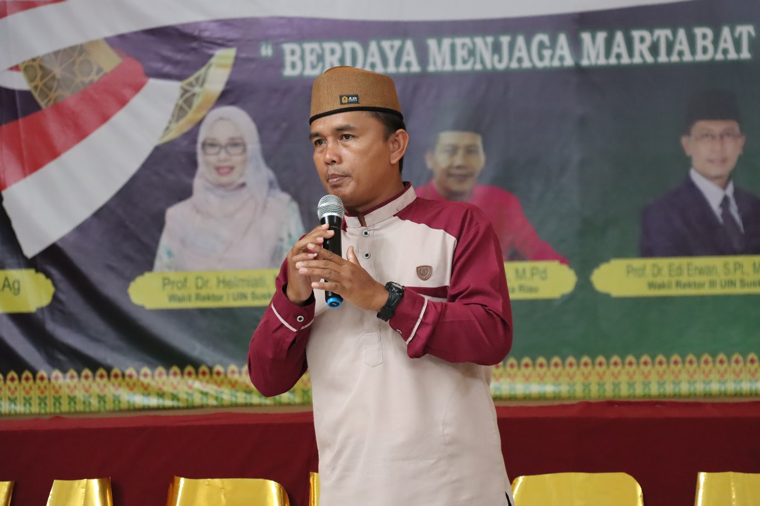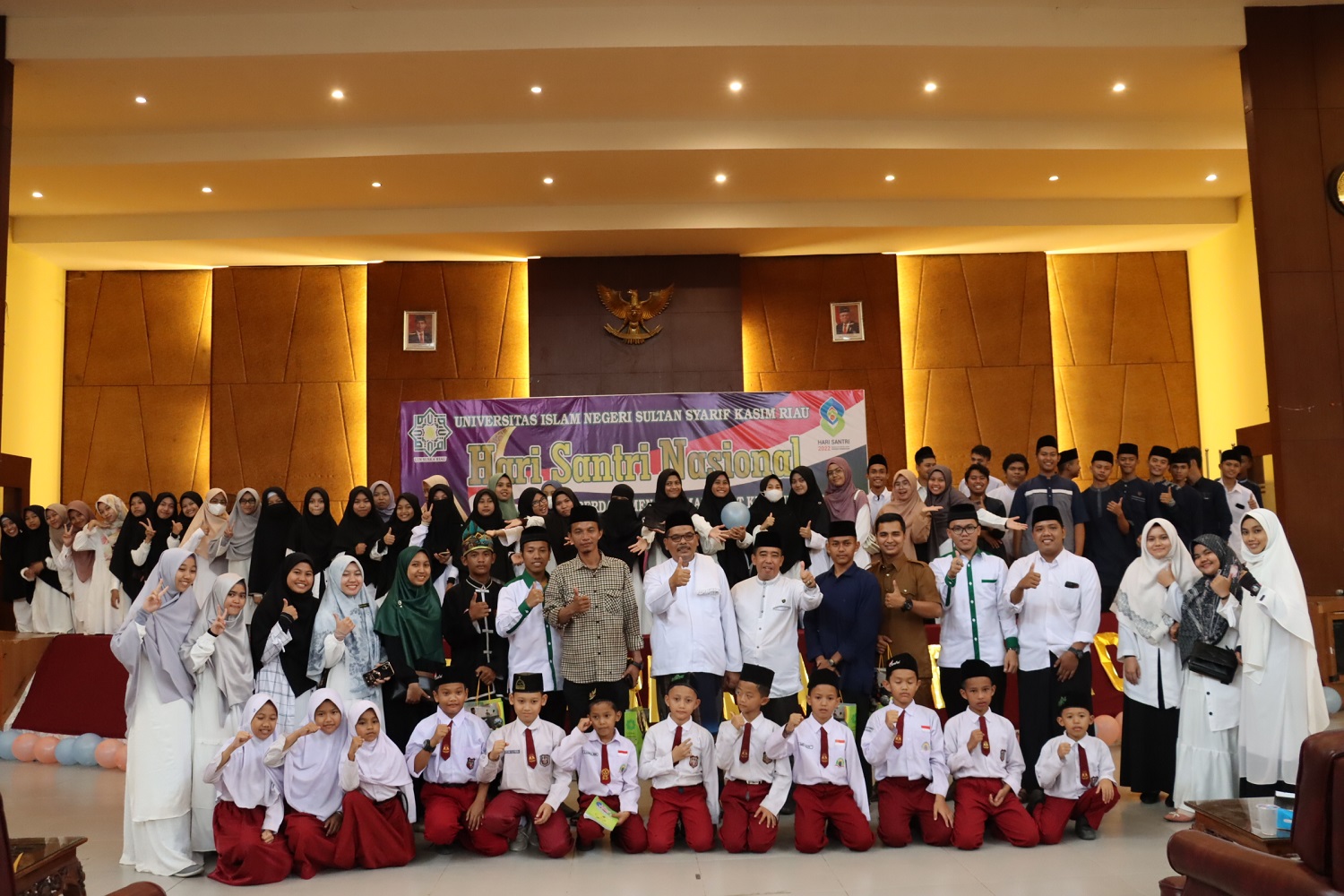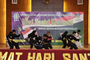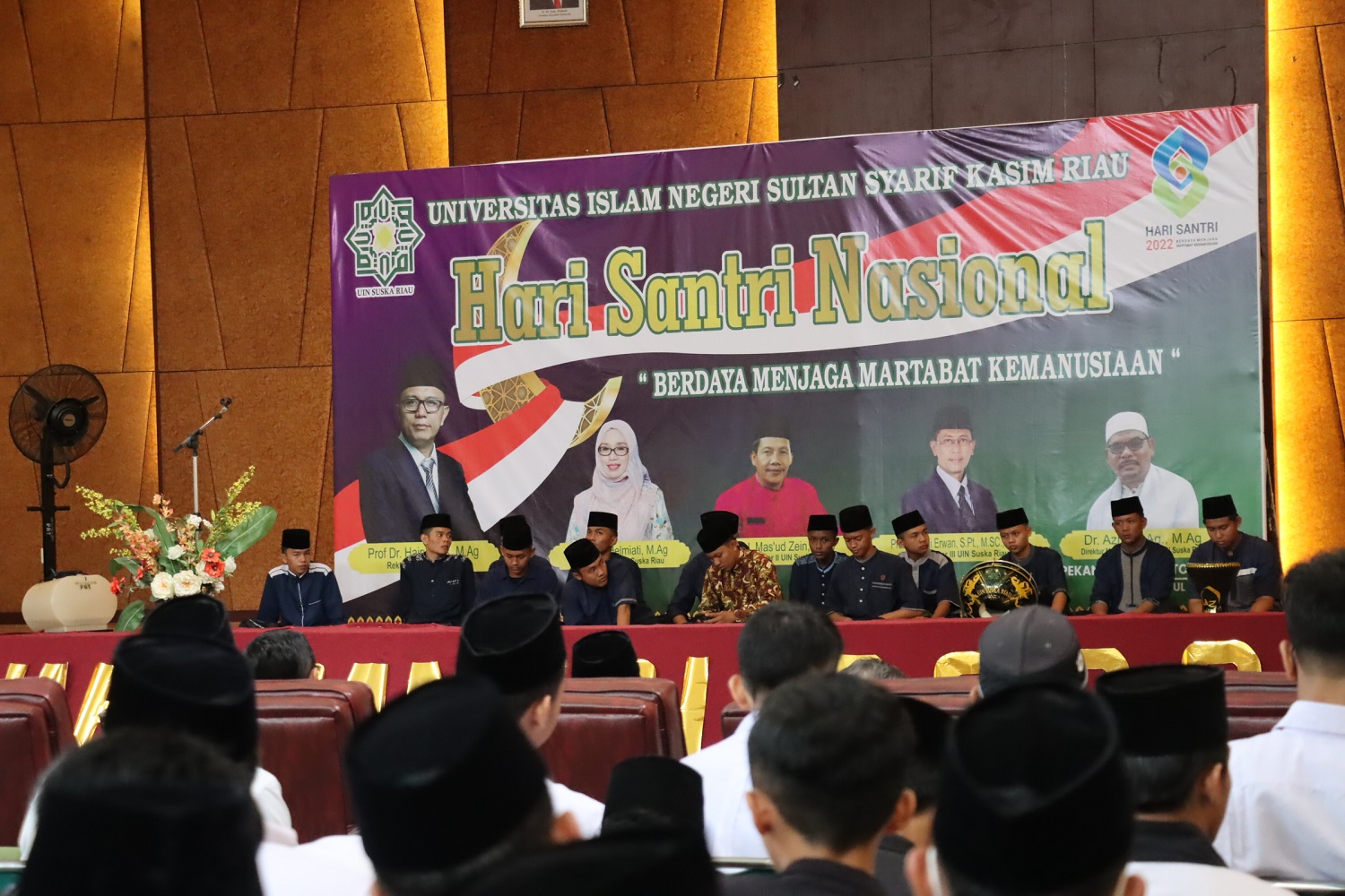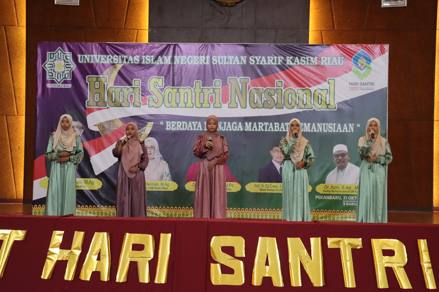 uin-suska.ac.id Dalam rangka memperingati hari santri, Ma’had Al-Jamiah UIN Suska Riau mengadakan kegiatan haflah dengan mengusung tema “Berdaya Menjaga Martabat Kemanusiaan”, kegiatan yang dilaksanakan secara Online dan Offline ini diadakan pada hari Senin, 31/10/2022 di gedung Islamic Center yang dihadiri oleh Rektor UIN Suska Riau, Wakil Rektor 2 dan 3, Kepala Biro AUPK, Wakil Dekan, Ketua Prodi, Kabag kerjasama, Pimpinan Pondok Pesantren se-Kota Pekanbaru, dan para santriwan dan santriwati utusan dari pondok pesantren yang ada di Pekanbaru.