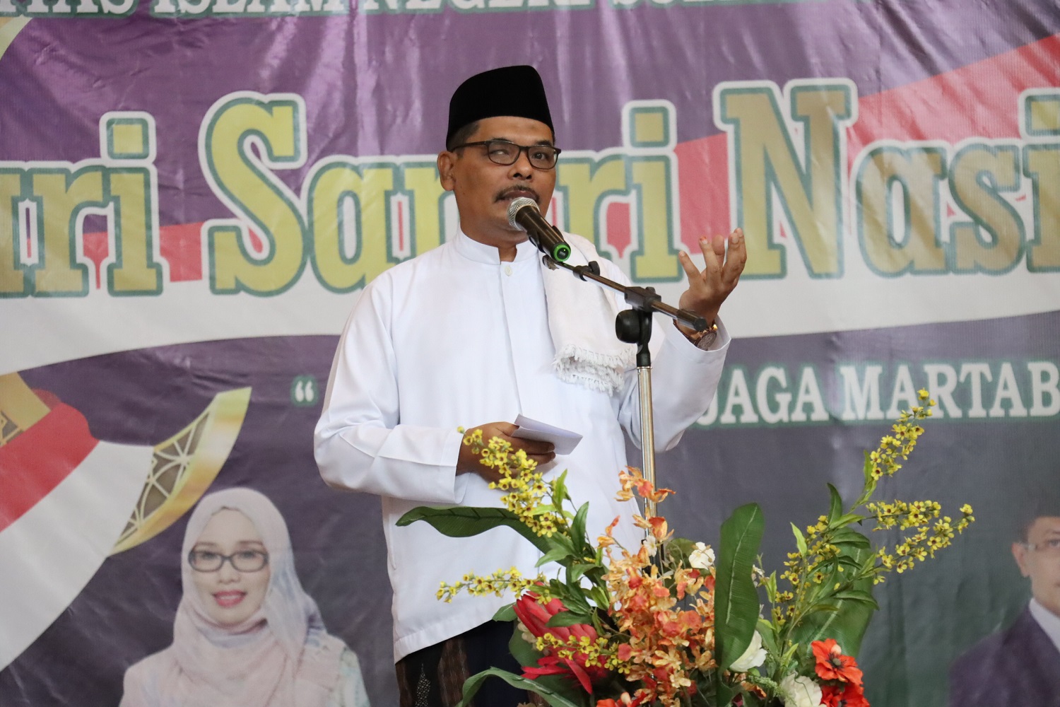 Dr. Azmi, S.Ag., M.Ag selaku Kepala Ma’had Al-Jami’ah UIN Suska Riau dalam Sambutannya mengatakan bahwa kegiatan hari ini dilaksanakan tidak lain adalah ingin manyatukan semangat peringatan hari besar yang lain dan saling berdekatan yaitu peringatan Maulid Nabi, Sumpah Pemuda dan hari Santri. Dengan adanya kegiatan ini diharapkan para santri mendapatkan value dari tausiyah–tausiyah yang disampakaikan nanti dan terhibur melihat penampilan atraksi-atraksi yang akan ditampilkan. Diakhir sambutan Dr. Azni menyampaikan ucapan terimakasih kepada seluruh panitia yang telah bekerja keras dalam mempersiapkan kegiatan ini.