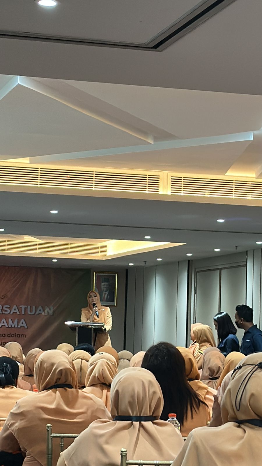 Lebih lanjut Penasehat Dharma Wanita Persatuan Kementerian Agama Mengatakan bahwa bersilaturahim dalam kegiatan rapat kerja Dharma wanita persatuan kementerian agama rapat kerja ini memiliki peranan penting dan strategis dalam organisasi paling tidak melaksanakan rapat kerja bertujuan untuk meningkatkan kualitas tugas dan pelayanan agar setiap pelaksanaan usulan kebutuhan masing-masing bidang realisasi dengan tepat dan akurat dan yang paling utama supaya setiap program dan kegiatan yang dihasilkan dari sidang rapat nantinya didiskusikan dirumuskan dan disepakati serta secara bersama dan kolaboratif sehingga dapat dijadikan pedoman dalam pelaksanaan program dan kegiatan di masing-masing bidang melalui Raker ini kita teguh komitmen bersama menyatukan langkah dan kedepan saya berharap DWP Kementerian Agama menjadi pusat PPKN kabupaten kota Kanwil Semuanya harus sudah membuka diri untuk bisa bersinergi dengan pihak luar instansi, lembaga, pemerintahan dan badan terutama untuk mengangkat isu-isu lokal yang memang lagi marak seperti pernikahan anak, angka perceraian yang tinggi, stanting apalagi itu intoleransi banyak banget yang bisa digarap, tegas Retno.