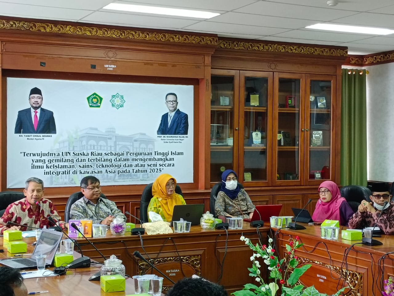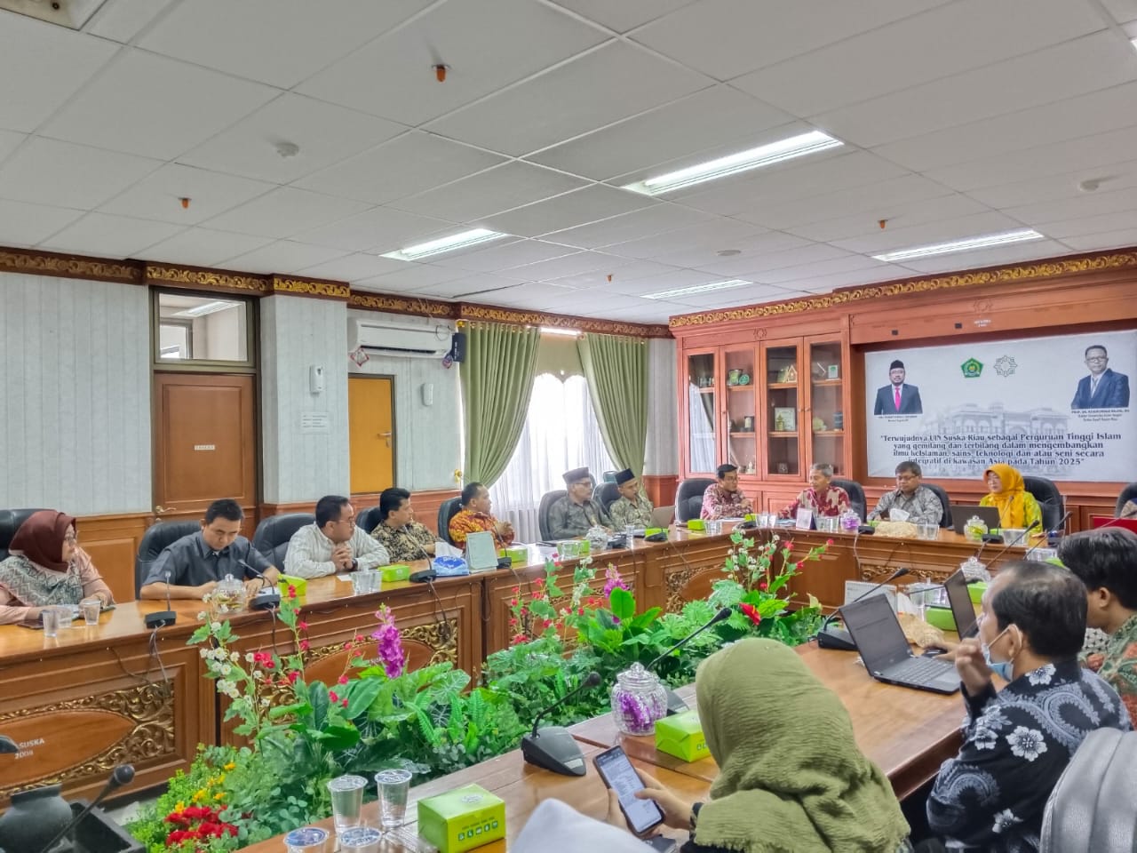 uin-suska.ac.id Tim Pemantauan Implementasi Moderasi Beragama Kementian Agama RI yang berjumlah 5 orang datangi UIN Suska Riau. Tim ini akan melakukan pemantauan terhadap efektifitas dan akuntabilitas pelaksanaan moderasi beragama di UIN Suska Riau. Kegiatan entry meeting dilaksanakan pada Kamis, (23/02/2023) bertempat di Ruang Rapat Pimpina Laintai IV Gedung Rektort. Tampak hadir pada pertemuan tersebut Wakil Rektor II dan III, Kepala Biro AAKK dan AUPK, Wakil Dekan II, Kepala Ma’had Al Jami’ah, analis pengelolaan Keuangan APBN Ahli Madya, dan Perencanaan Ahli Madya.
