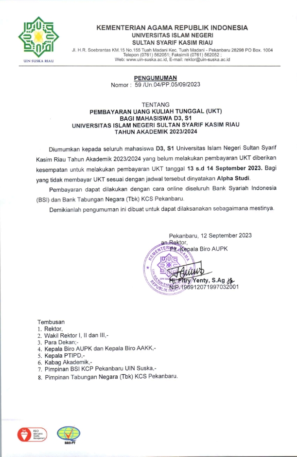 TERBARU, Pengumuman Perpanjangan Pembayaran Uang Kuliah Tunggal