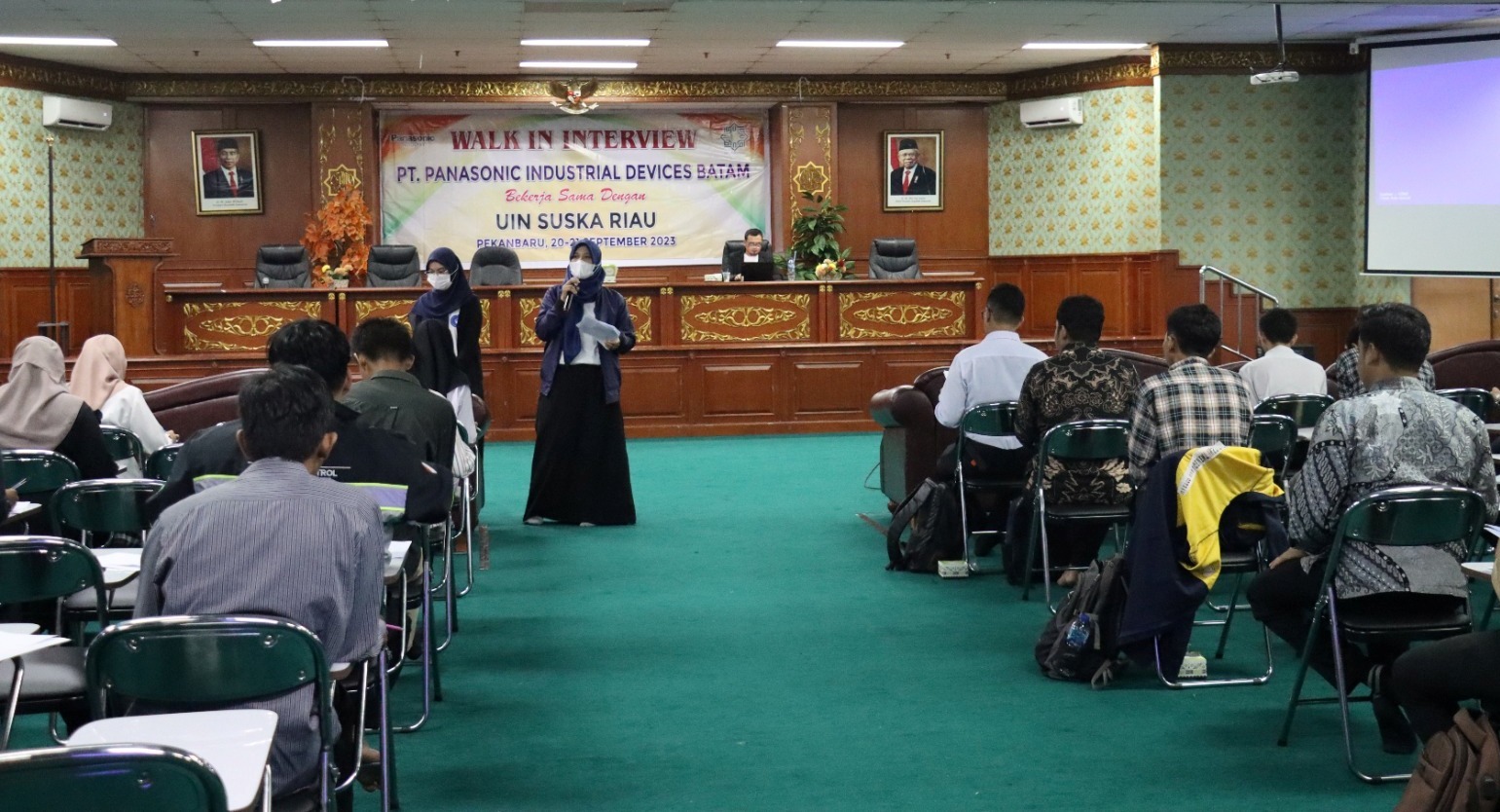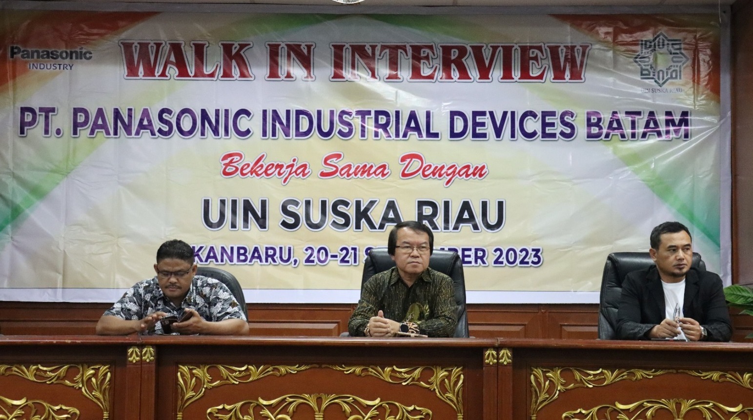 uin-suska.ac.id UIN Suska Riau mengadakan Job Fair dengan PT Panasonic Industrial Batam dalam hal ini Lembaga Penjamin Mutu (LPM) sebagai host yang mewakili UIN Suska Riau kegiatan ini di gelar pada hari, Rabu, 20 September 2023 di Auditorium Lt V Gedung Rektorat. Pada kesempatan ini di buka oleh Dekan Fak.Saintek DR Hartono, M.Pd yang mewakili Rektor , rombongan dari PT Panasonic yang dipimpin oleh Budi Hutasuhut maneger HRD dan dihadiri Ketua LPM, WD1 Fak.Sains dan Teknologi, Kepala Pusat Pengembangan Karir LPM, Alumni dari Fakultas Sains dan Teknologi yang ingin mengukuti Job Fair.