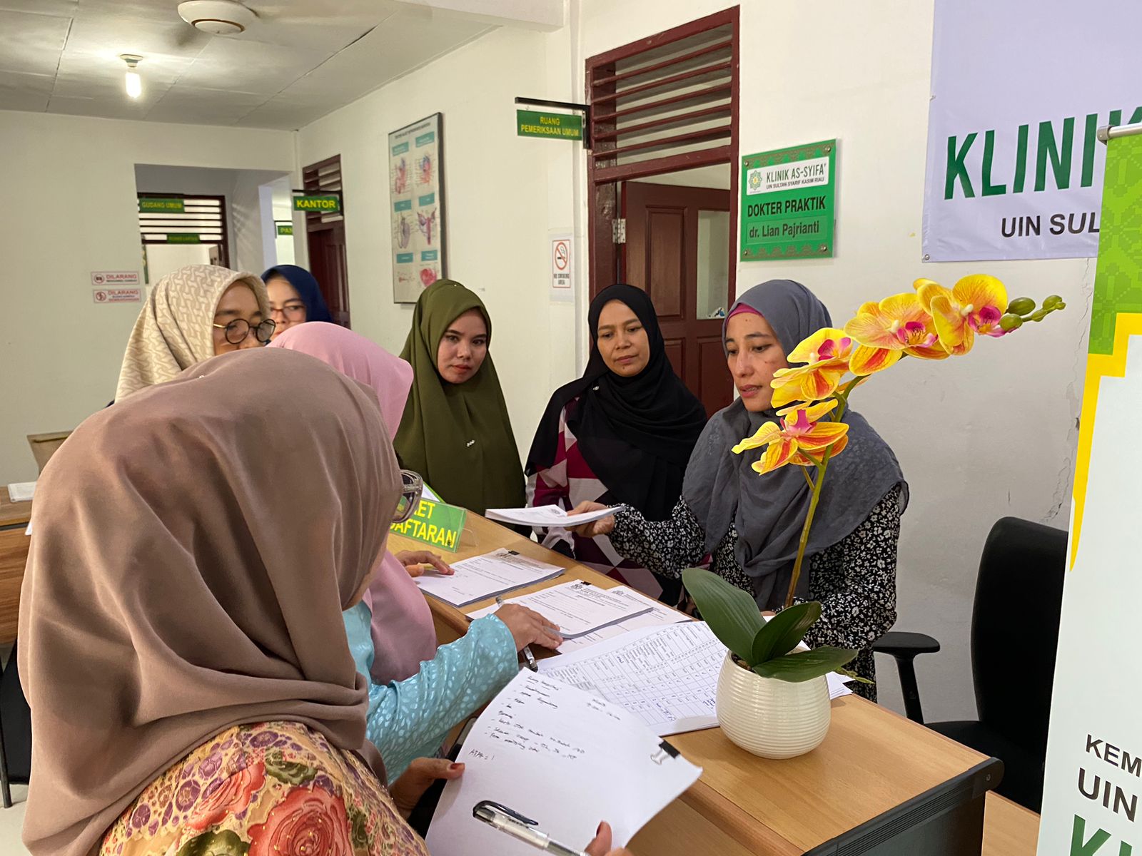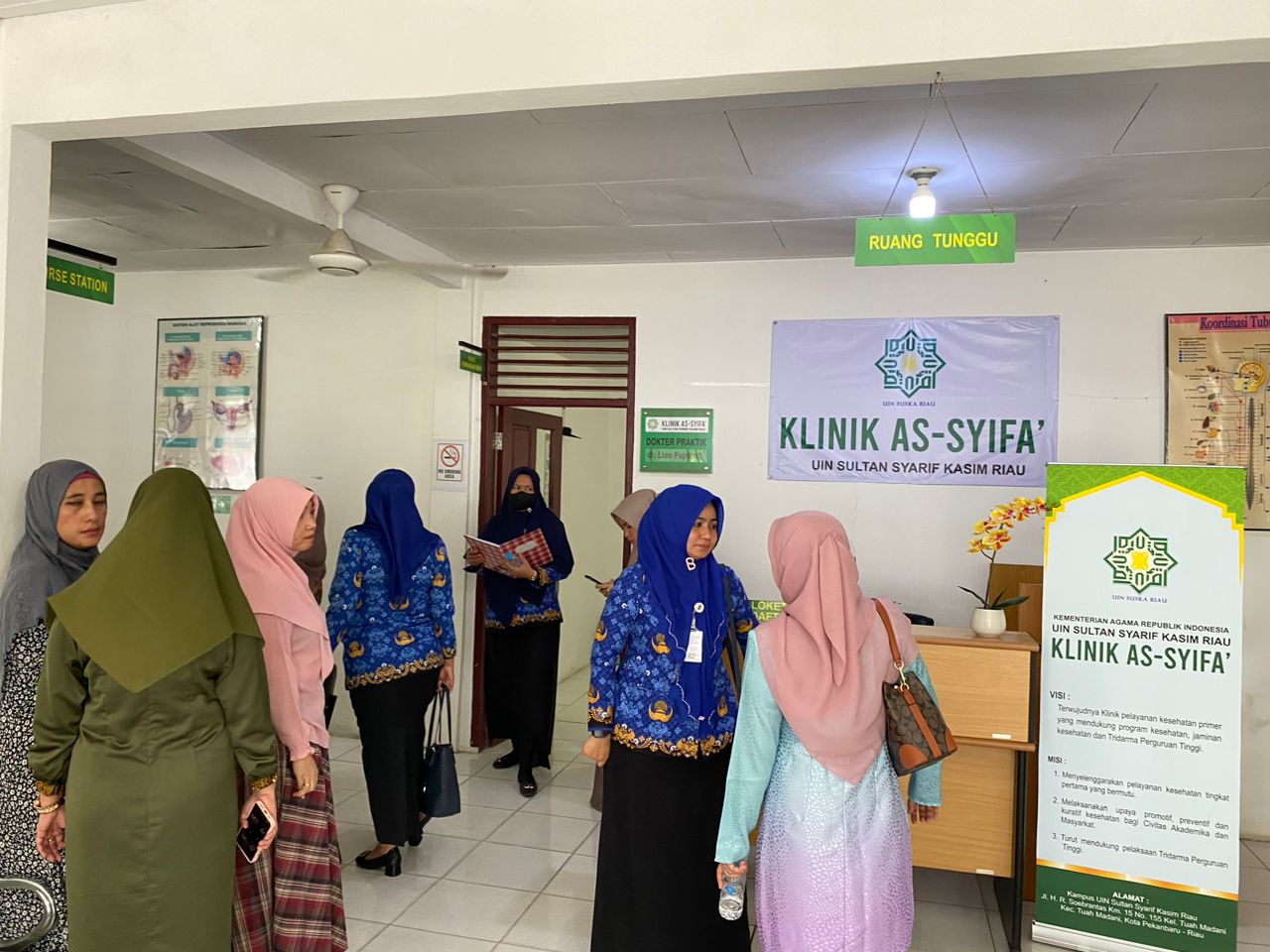 Sub koordinator Perizinan dan Mutu Dinas Kesehatan Kota Pekanbaru ibu Desh Pranthi Wenaz, SKM, didampingi oleh beberapa staf dan 2 orang tim dari DPMPSP, turun langsung untuk melakukan peninjauan dan visitasi ini, sementara dari UIN Sultan Syarif Kasim Riau dihadiri oleh Wakil Rektor III, Prof. Edi Erwan, SPt, MSc, PhD, Kabag Akademik, Kepala Klinik, dokter serta Nakes pengelola klinik As-syifa’.