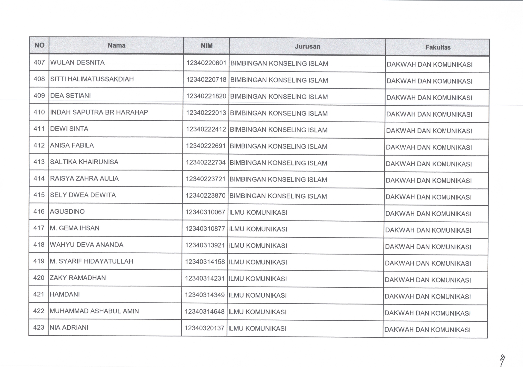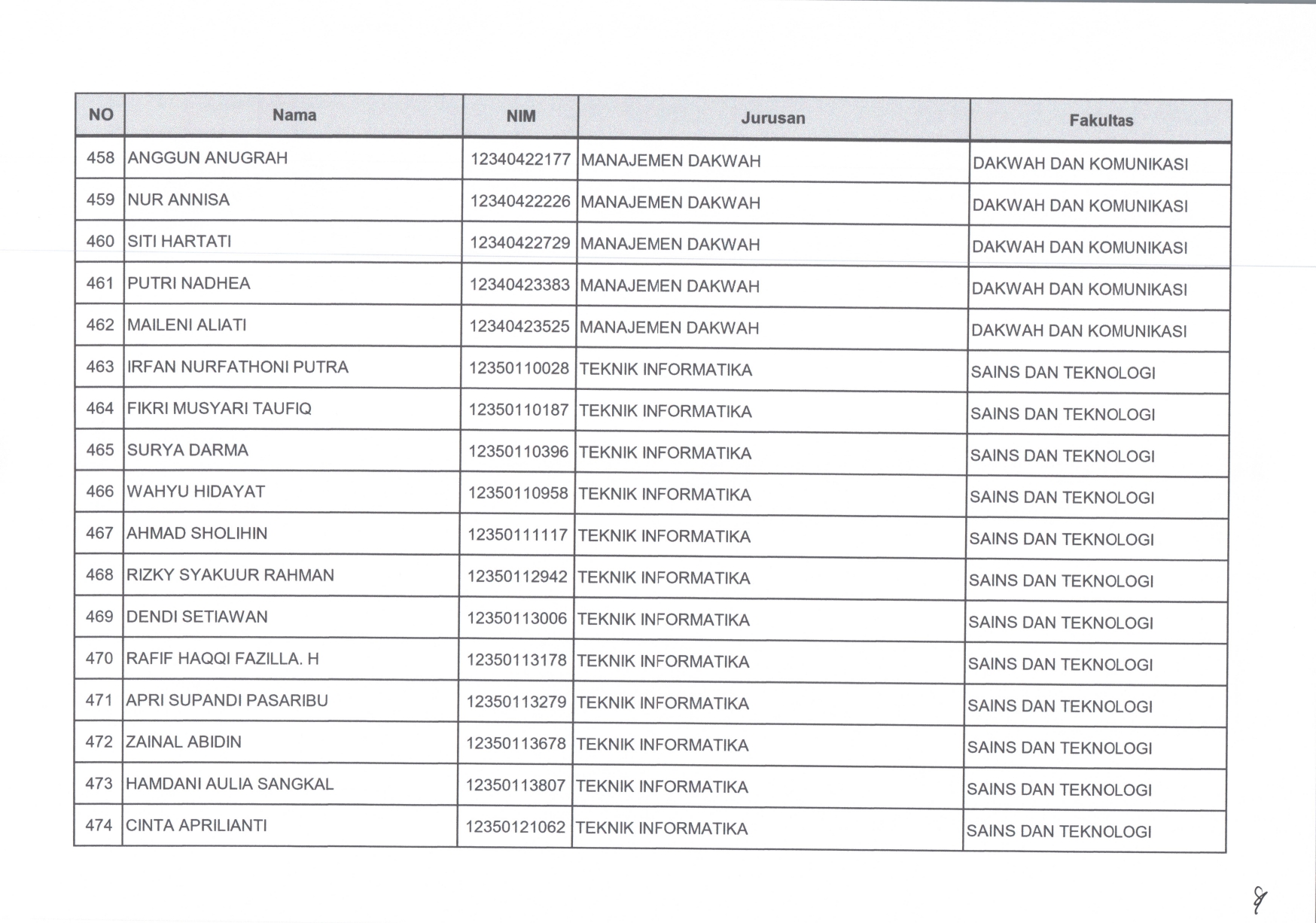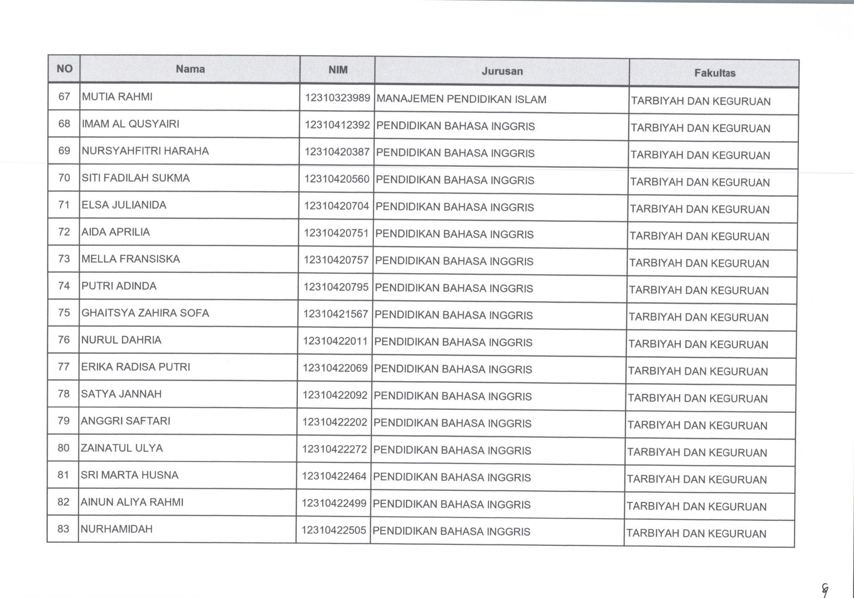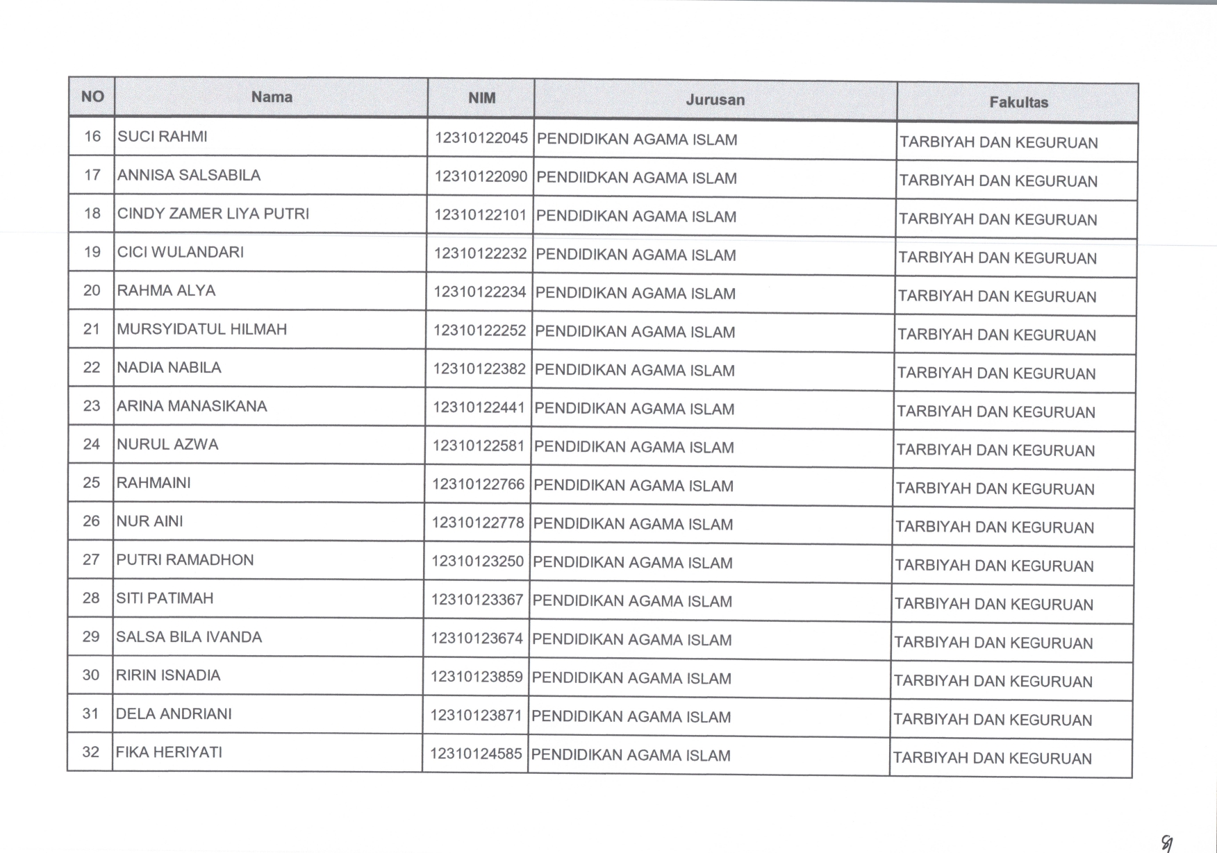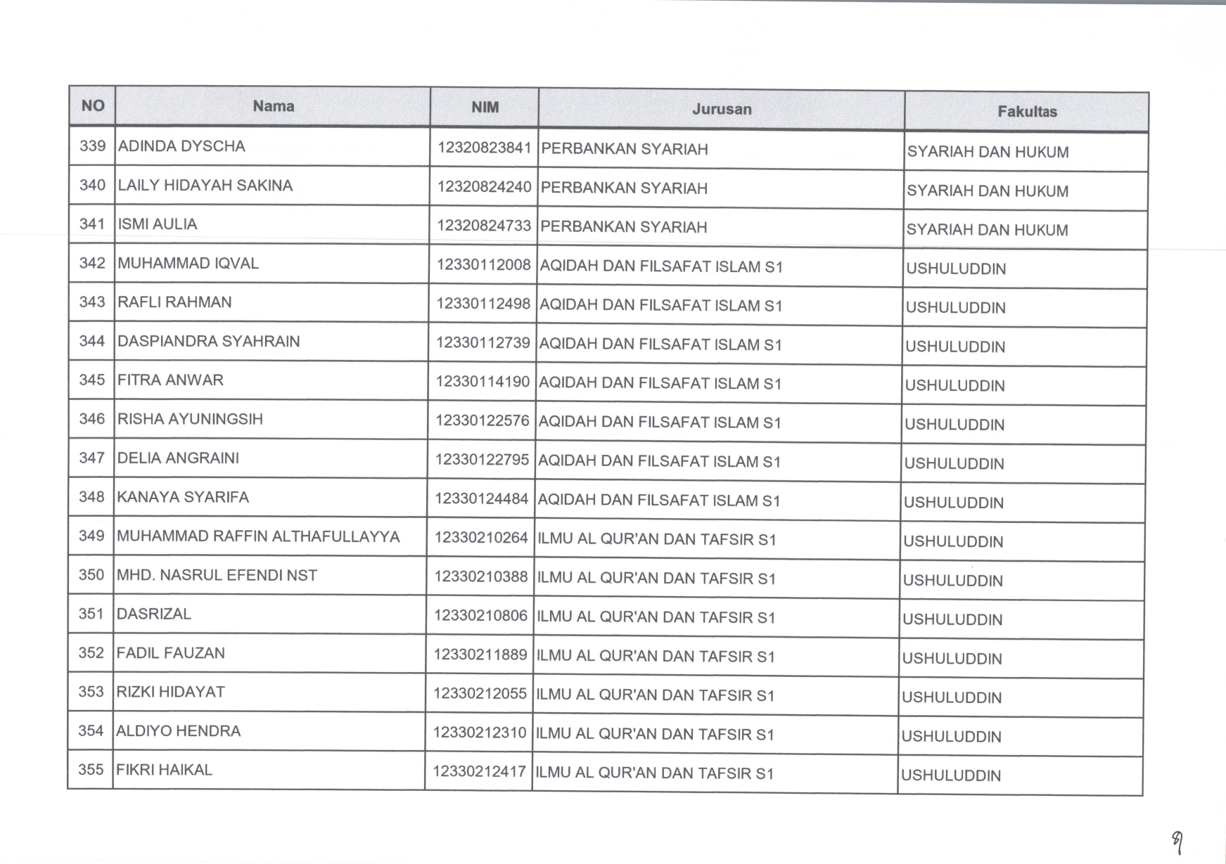 Penyampaian Daftar Penerima Beasiswa KIP Kuliah Rekrutmen Baru Kementerian Agama Republik Indonesia pada UIN Sultan Syarif Kasim Riau Tahun 2023