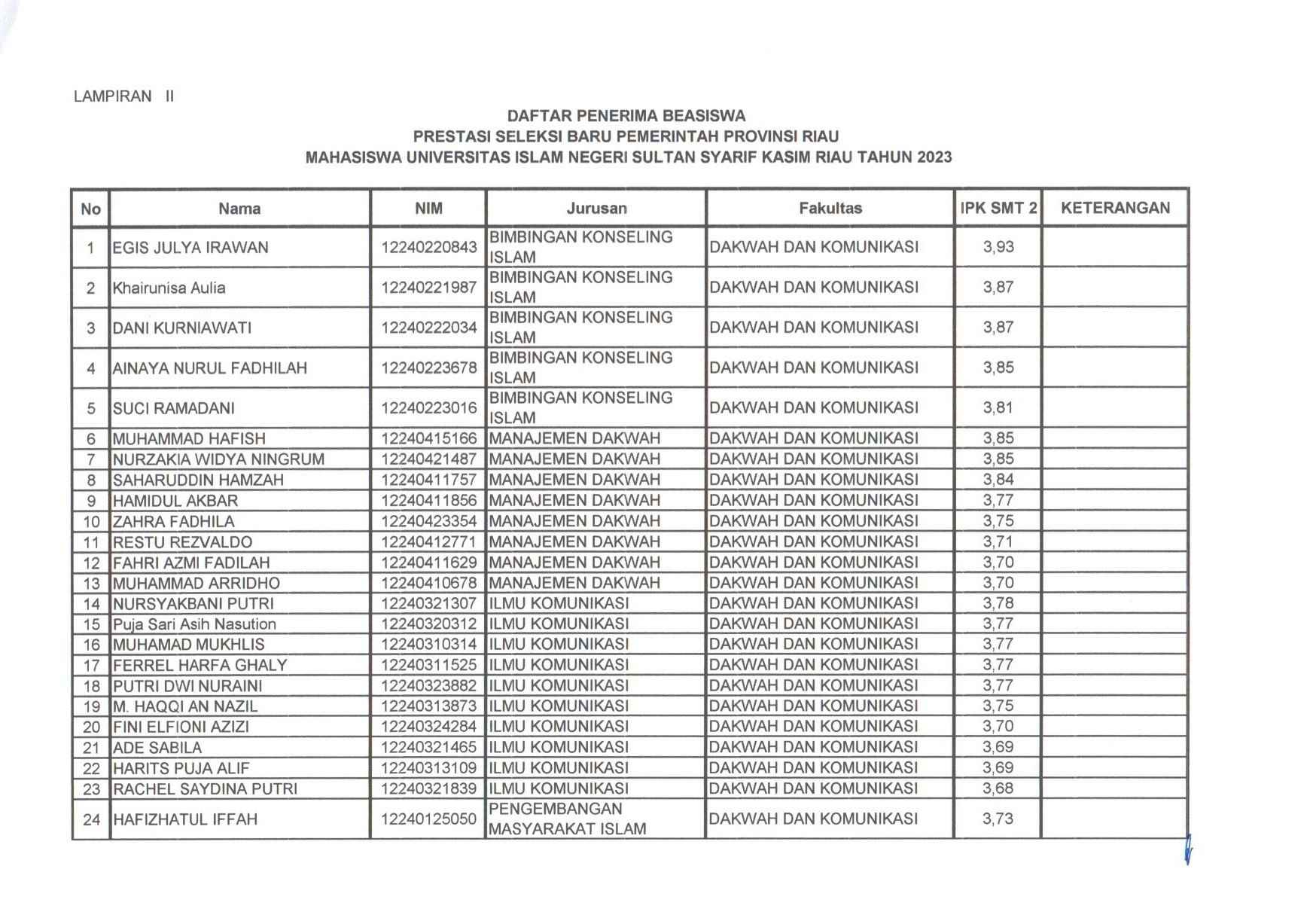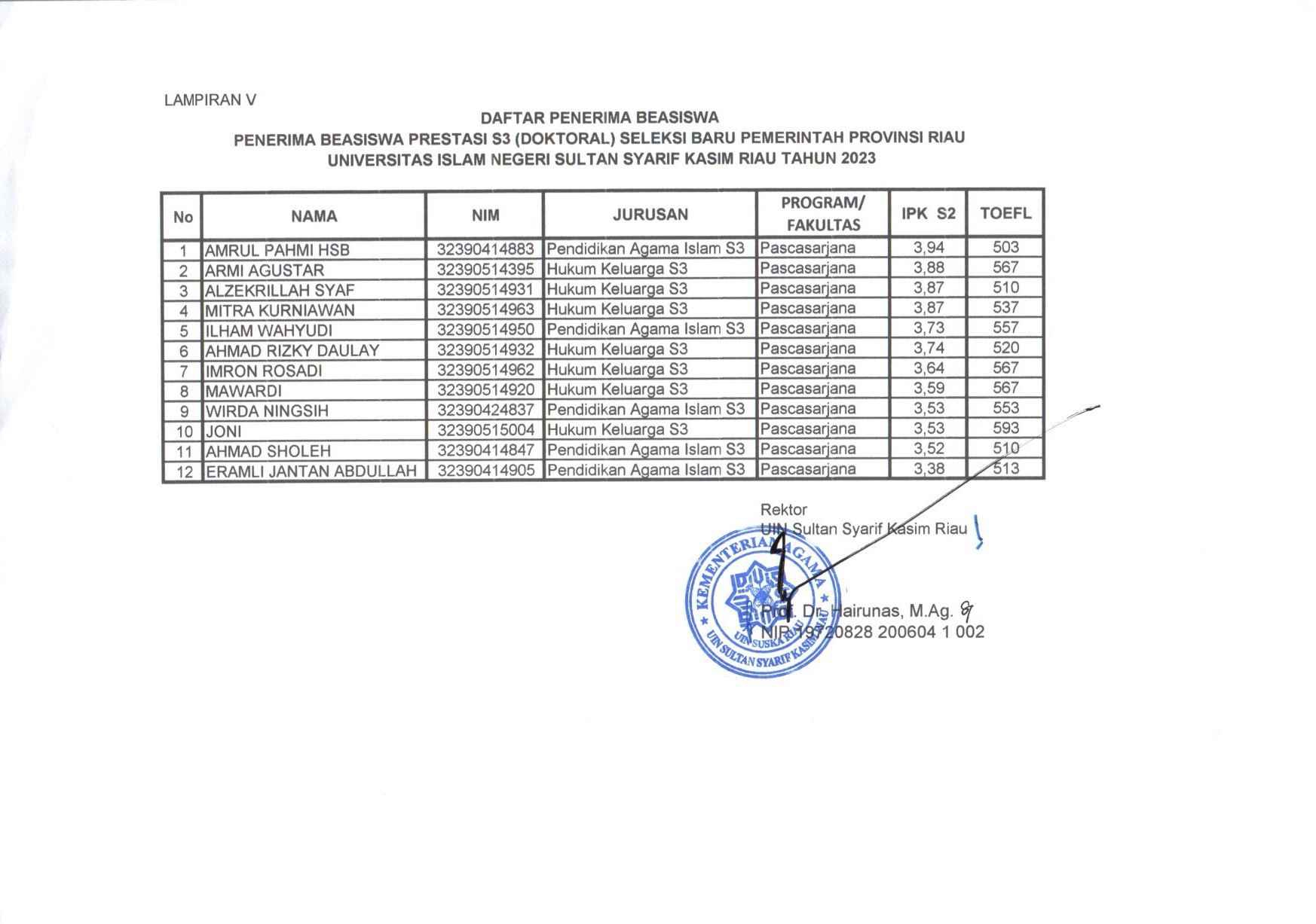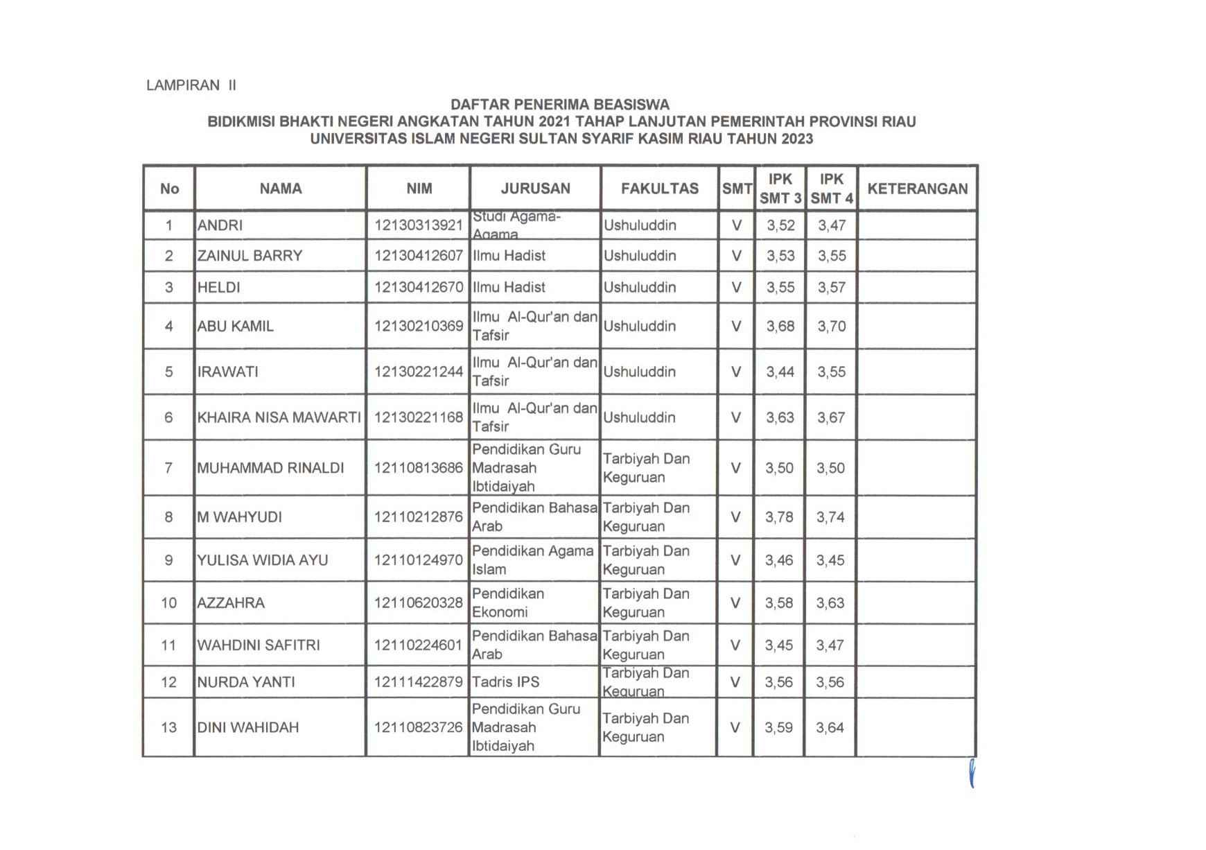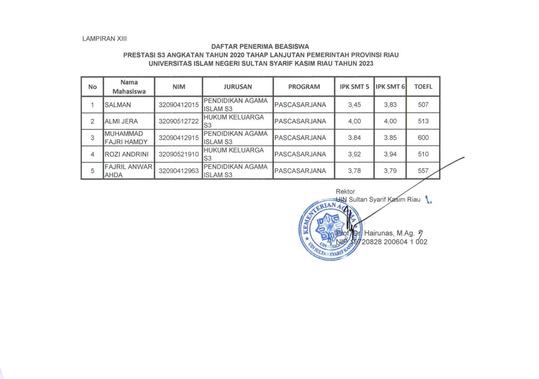 Permintaan Dokumen Pencairan Dana Beasiswa Bagi Mahasiswa Penerima Beasiswa Pemerintah Provinsi Riau Seleksi Baru dan Tahap Lanjutan UIN Sultan Syarif Kasim Riau Tahun 2023