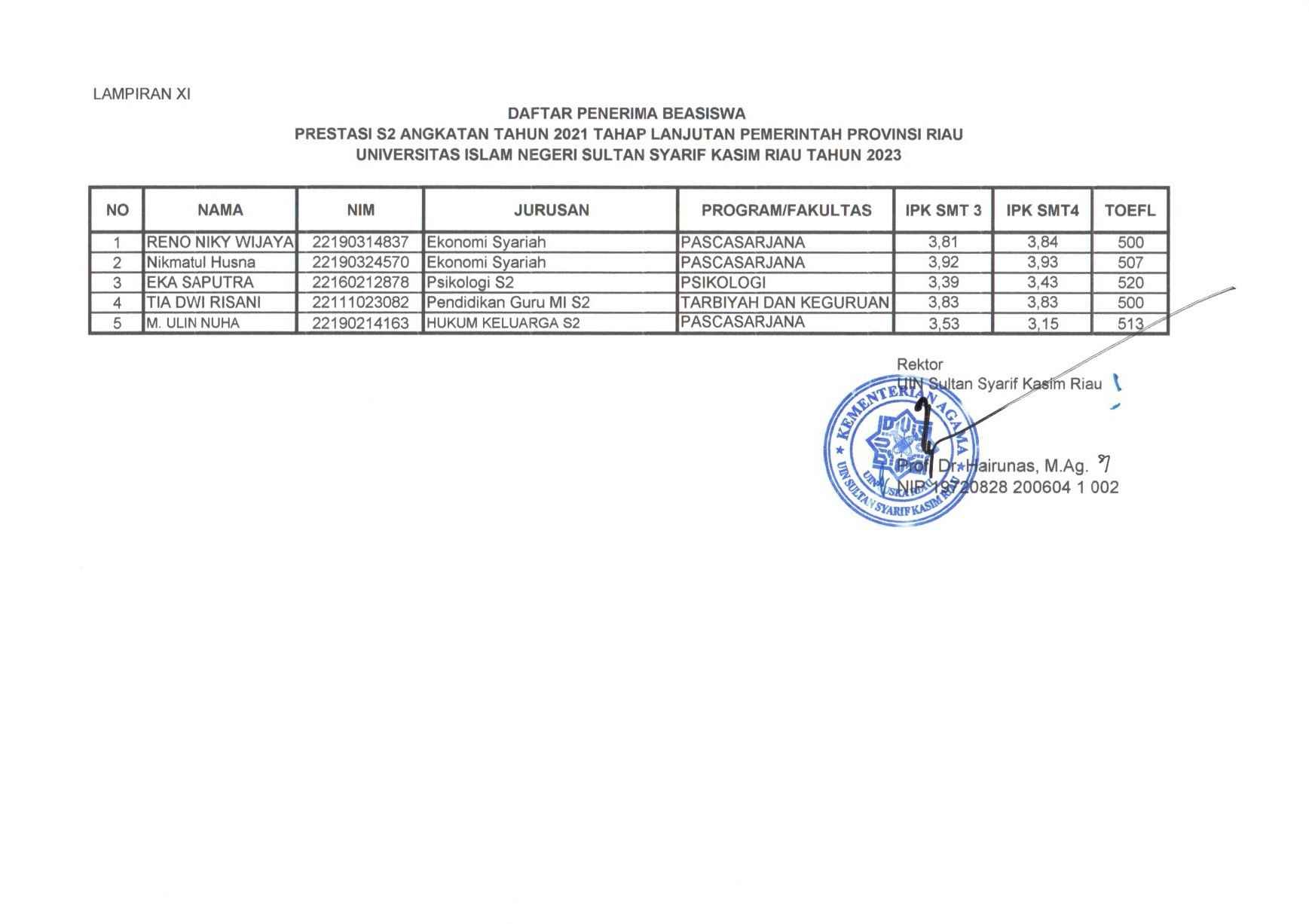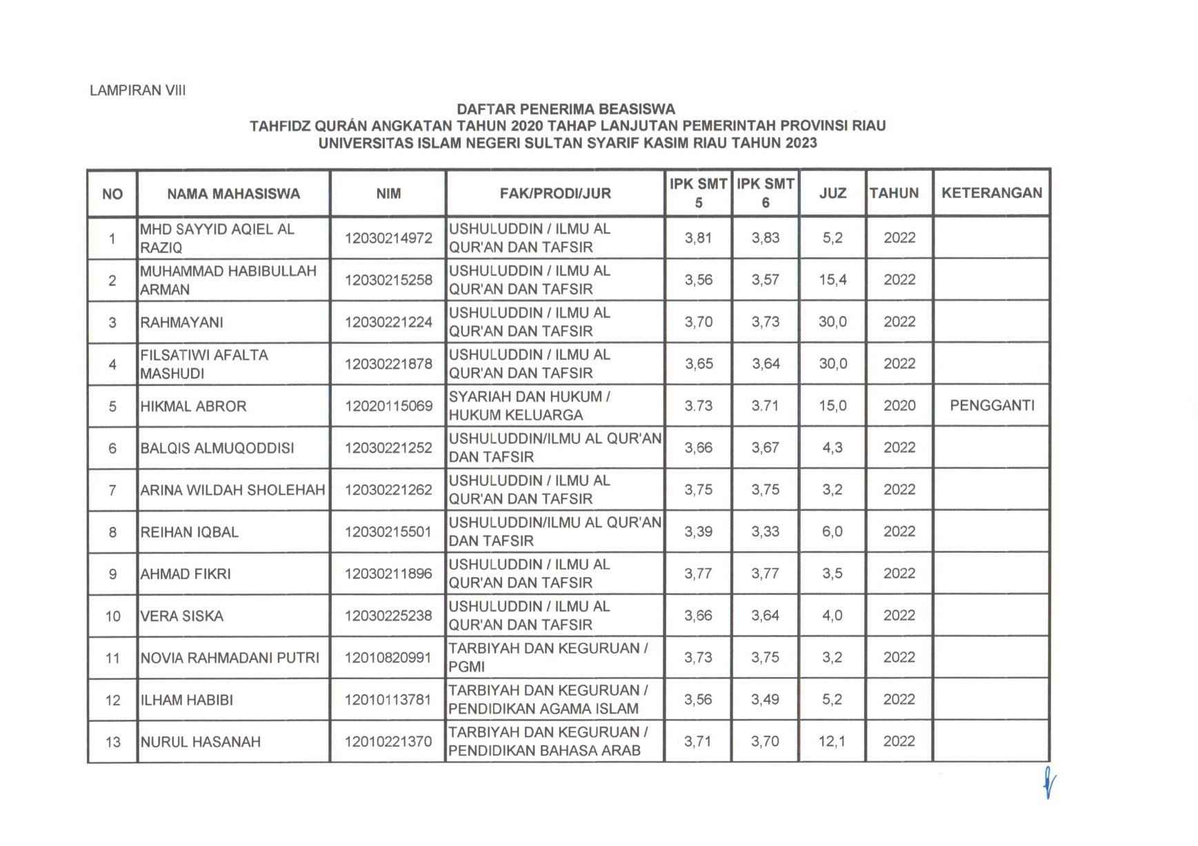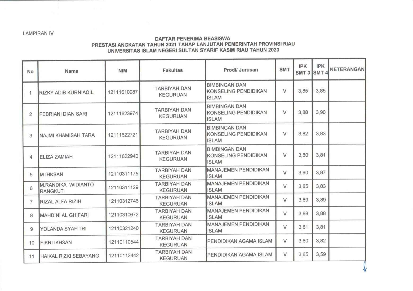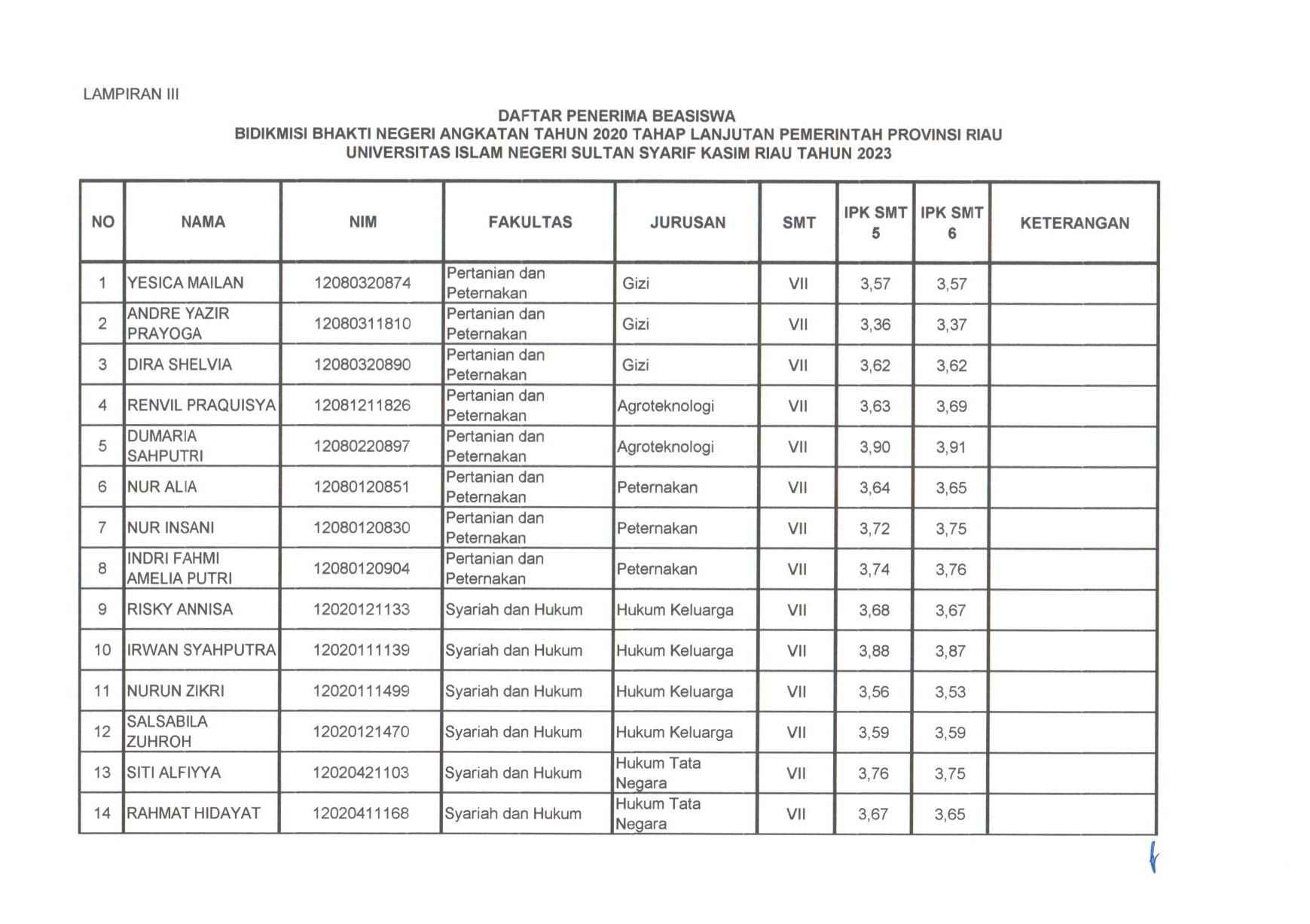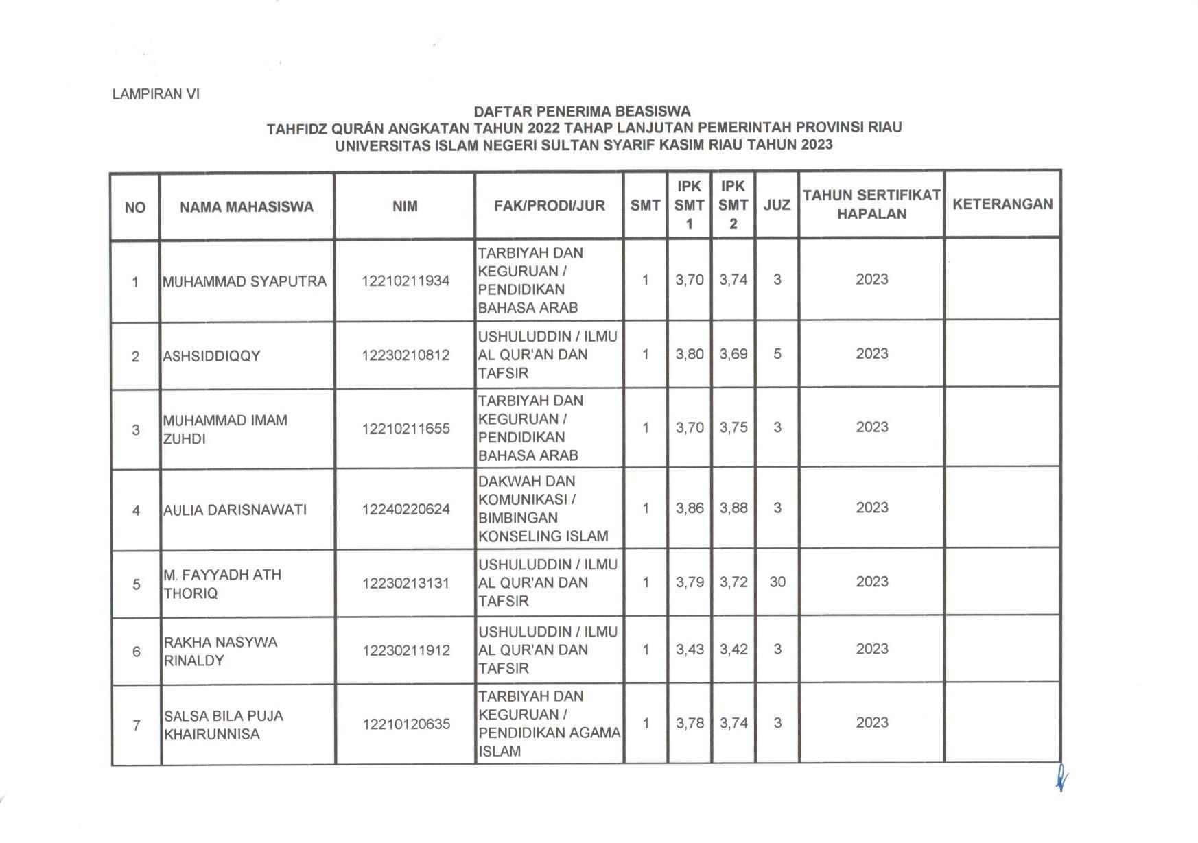 Permintaan Dokumen Pencairan Dana Beasiswa Bagi Mahasiswa Penerima Beasiswa Pemerintah Provinsi Riau Seleksi Baru dan Tahap Lanjutan UIN Sultan Syarif Kasim Riau Tahun 2023