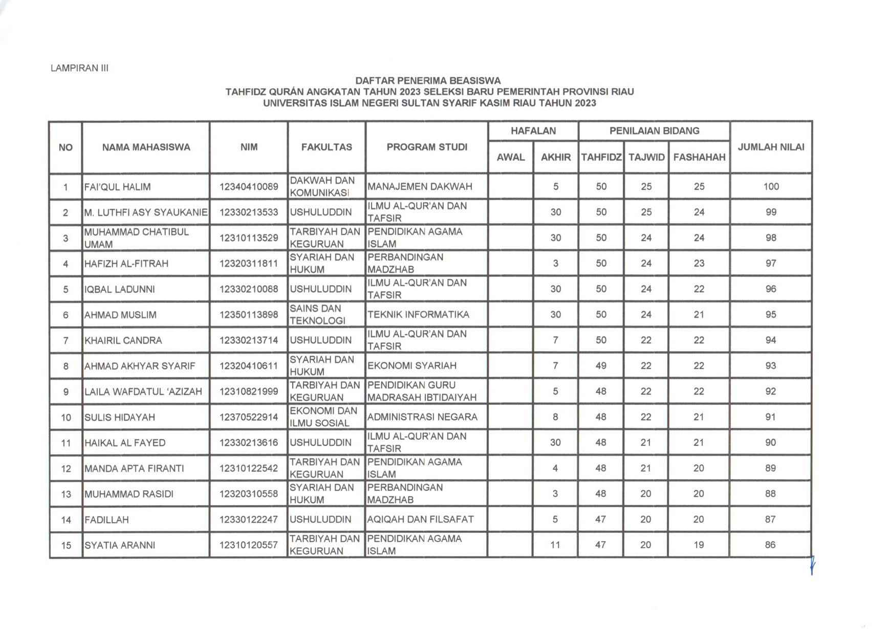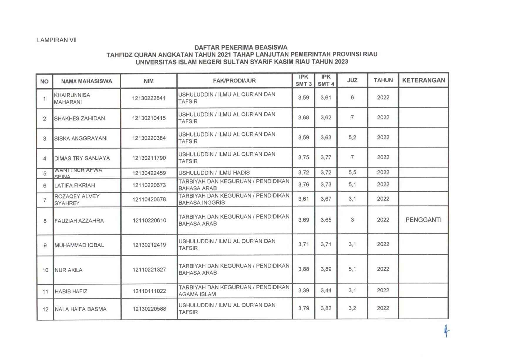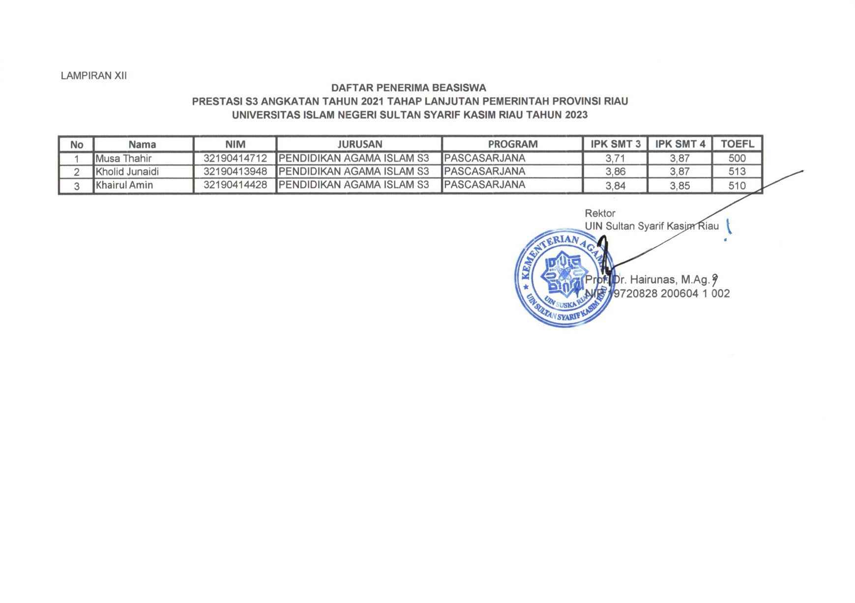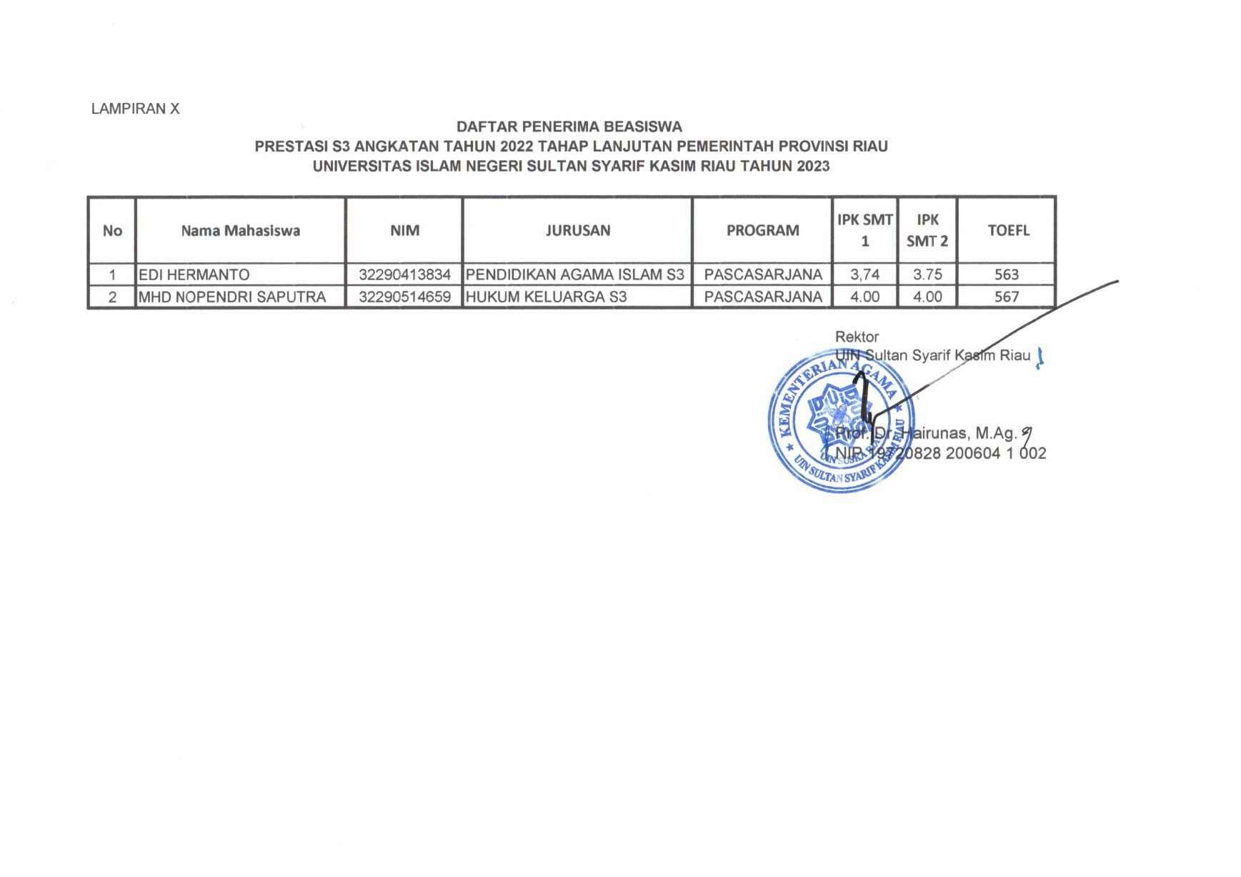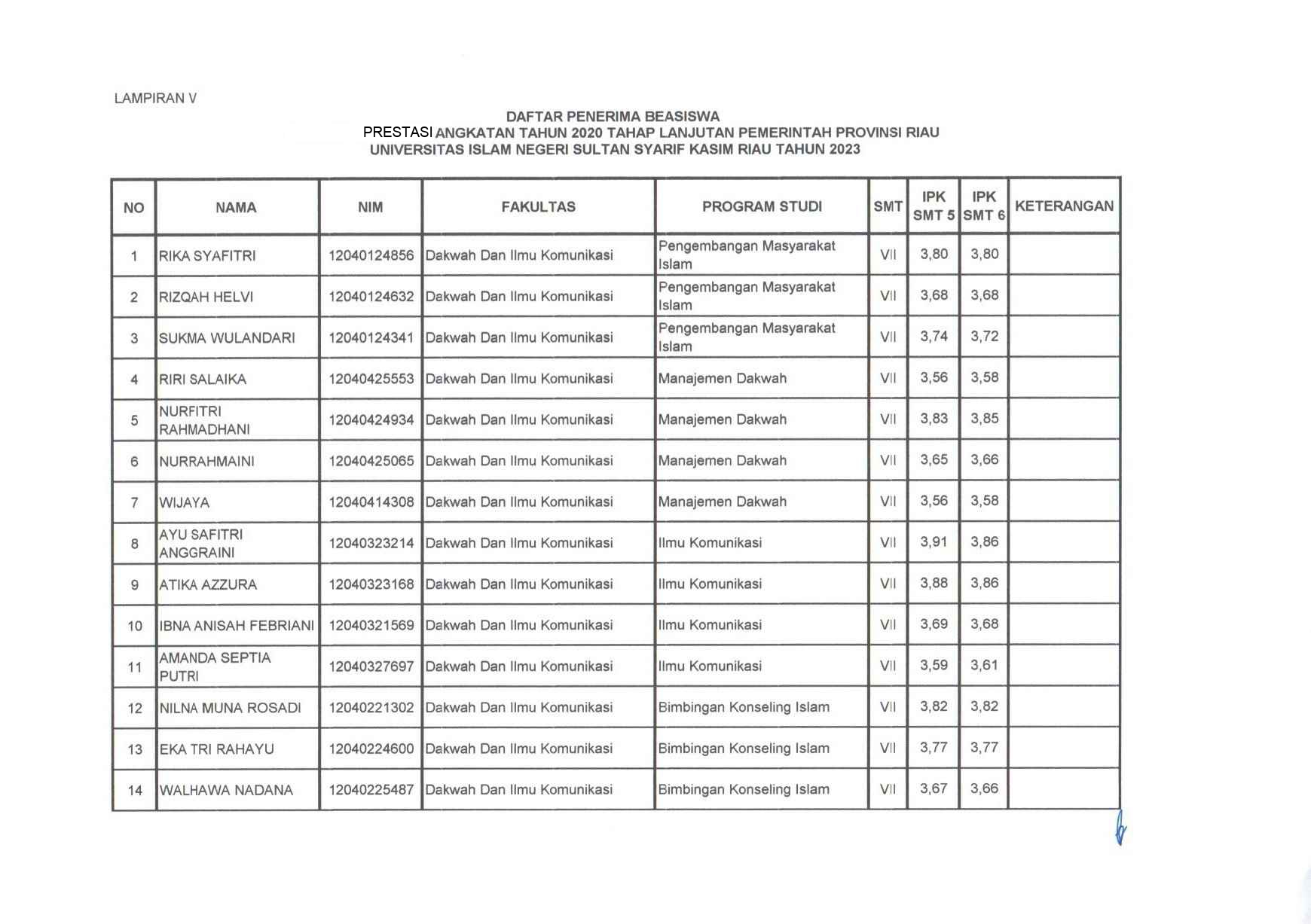 Permintaan Dokumen Pencairan Dana Beasiswa Bagi Mahasiswa Penerima Beasiswa Pemerintah Provinsi Riau Seleksi Baru dan Tahap Lanjutan UIN Sultan Syarif Kasim Riau Tahun 2023