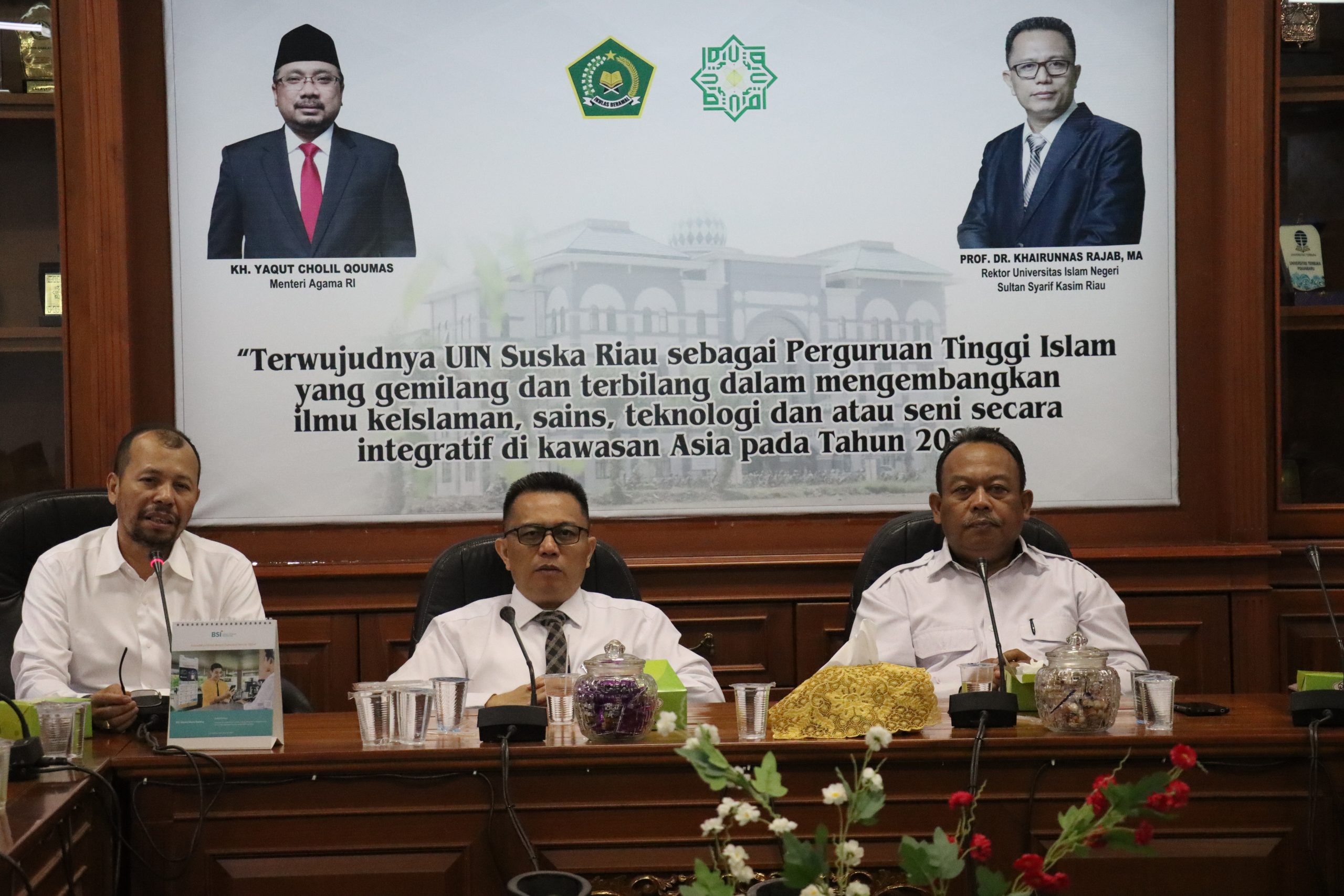 uin-suska.ac.id Bertempat di Ruang Rapat Pimpinan lantai IV Gedung Rektorat UIN Suska Riau, hari Senin tanggal 12 Februari 2024, Rektor UIN Suska Riau, Wakil Rektor I, Wakil Rektor III, Kepala Biro AUPK, Para Dekan Fakultas di Lingkungan UIN Suska Riau, Ketua dan Kepala unit di Lingkungan UIN Suska Riau, Ketua Tim Perencanaan, Keuangan, dan OKH, Bendahara Penerimaan, Bendahara Pengeluaran dan para JF Perencanaan, Kepegawaian, Keuangan, Organisasi dan Hukum melakukan rapat dengan agenda Pleno Pembahasan Draf / Rancangan Peraturan Rektor tentang Tata Kelola BLU UIN Suska Riau. Rapat ini menghadirkan Narasumber dari Tim Biro Keuangan dan BMN Kemenag RI serta Tim PPK BLU Kemenkeu RI.
