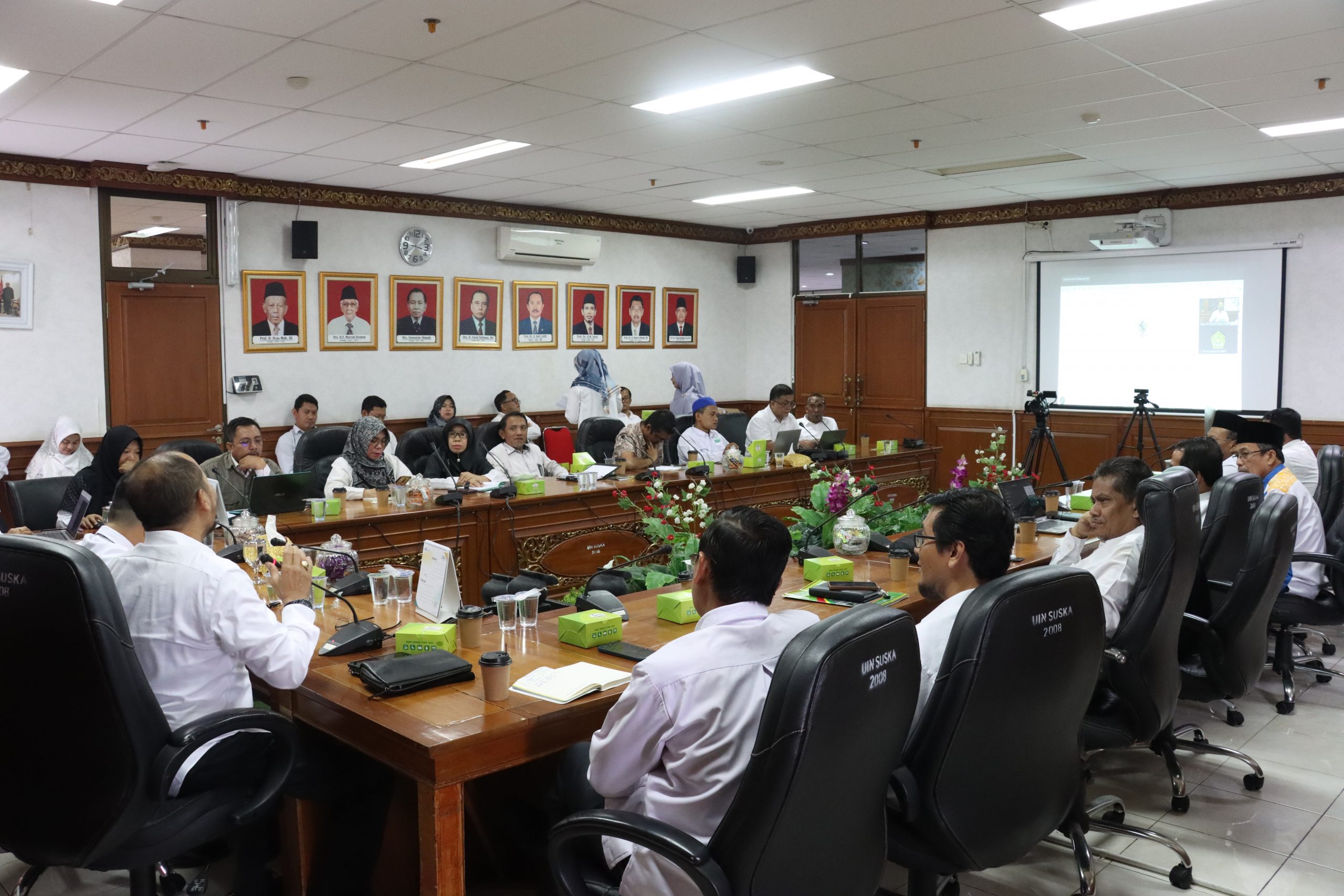 Kepala Biro AUPK menyampaikan bahwa pembahasan agenda ini berdasarkan Surat Tugas Sekjen kepada Tim Keuangan plus PPK BLU untuk menghadirkan semua pimpinan dalam rangka pendampingan penyusunan Tata Kelola BLU UIN Suska Riau.