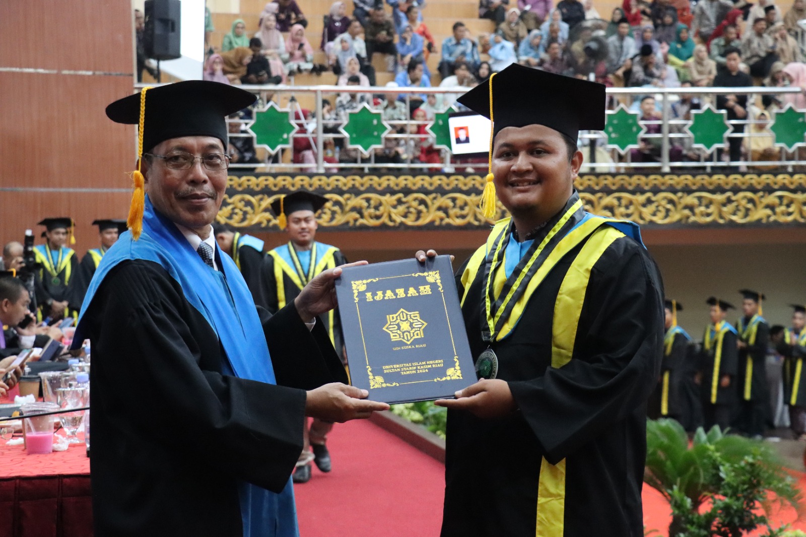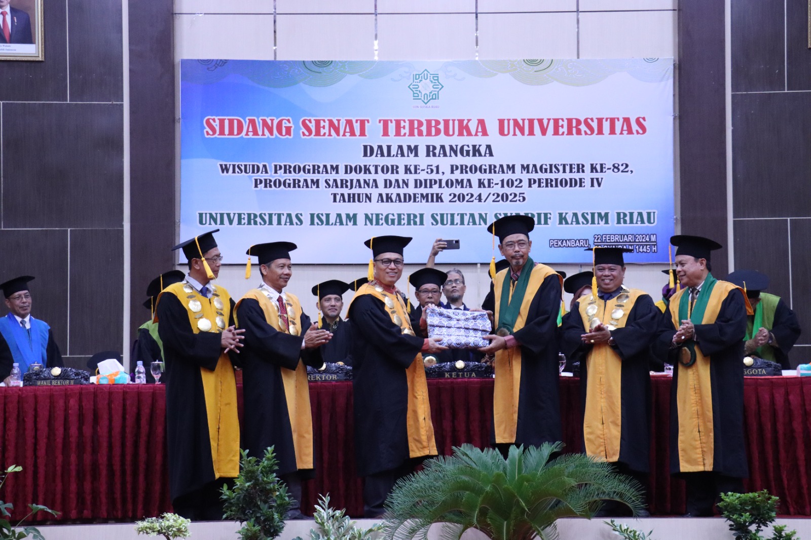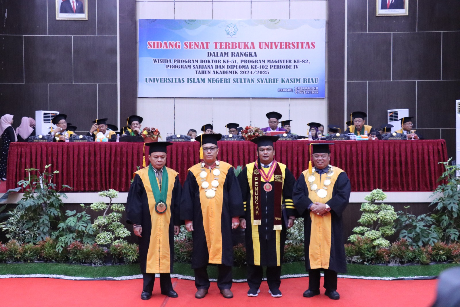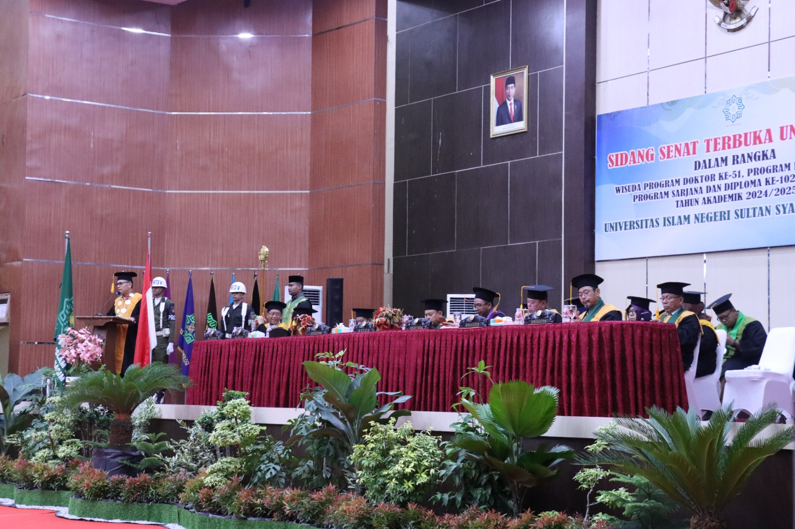 uin-suska.ac.id Bertempat di Gedung PKM (Pusat Kegiatan Mahasiswa) Kamis (22/02/2024) Rektor UIN Sultan Syarif Kasim Riau resmi mengukuhkan 600 wisudawan wisudawati Program Doktor ke-51, Program Magister ke -82, Program Sarjana dan Diploma ke-102 Periode IV Tahun Akademik 2024/2025. Sidang Senat Terbuka Universitas dibuka resmi oleh Ketua Senat Prof. Dr. Syamruddin Nasution, M.A. Kegiatan wisuda ini dihadiri oleh para Dekan Fakultas, Direktur Pascasarjana, Para Guru Besar dan Sekretaris serta Anggota senat UIN Sultan Syarif Kasim Riau.