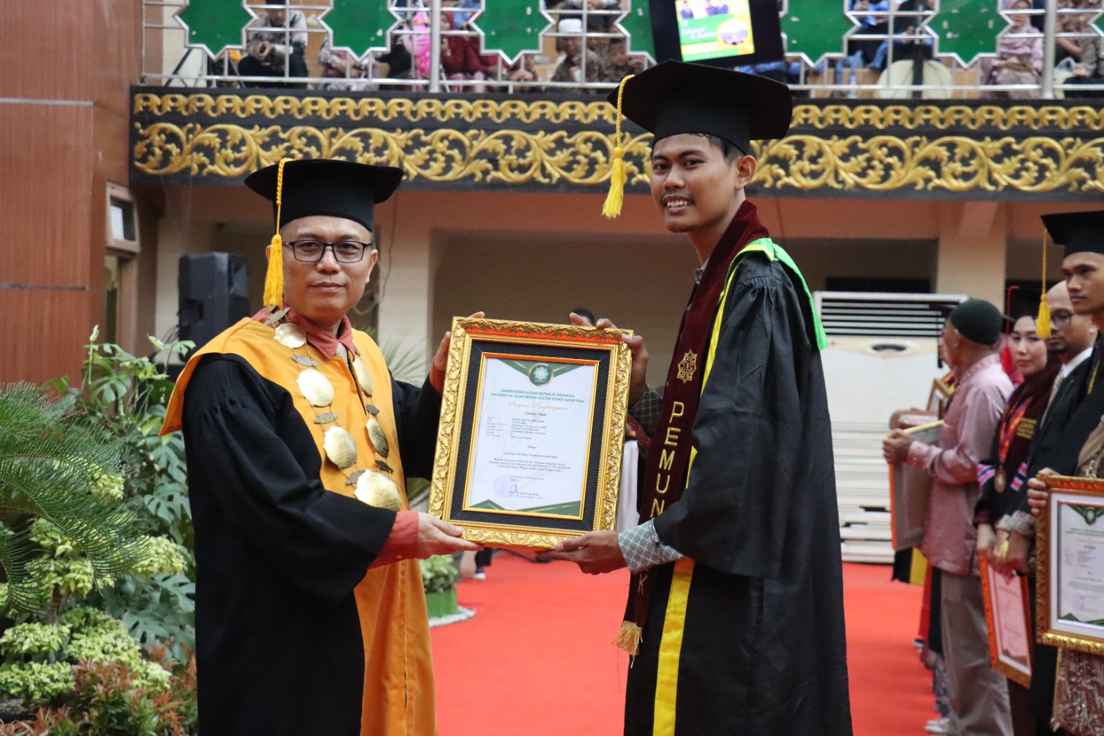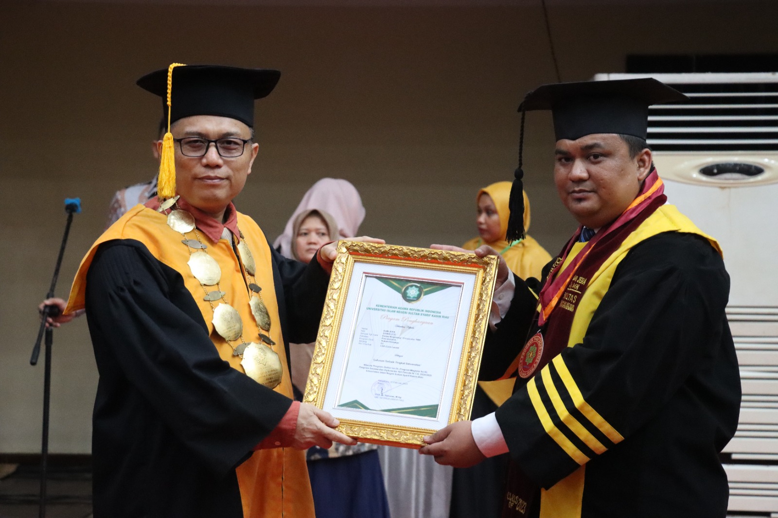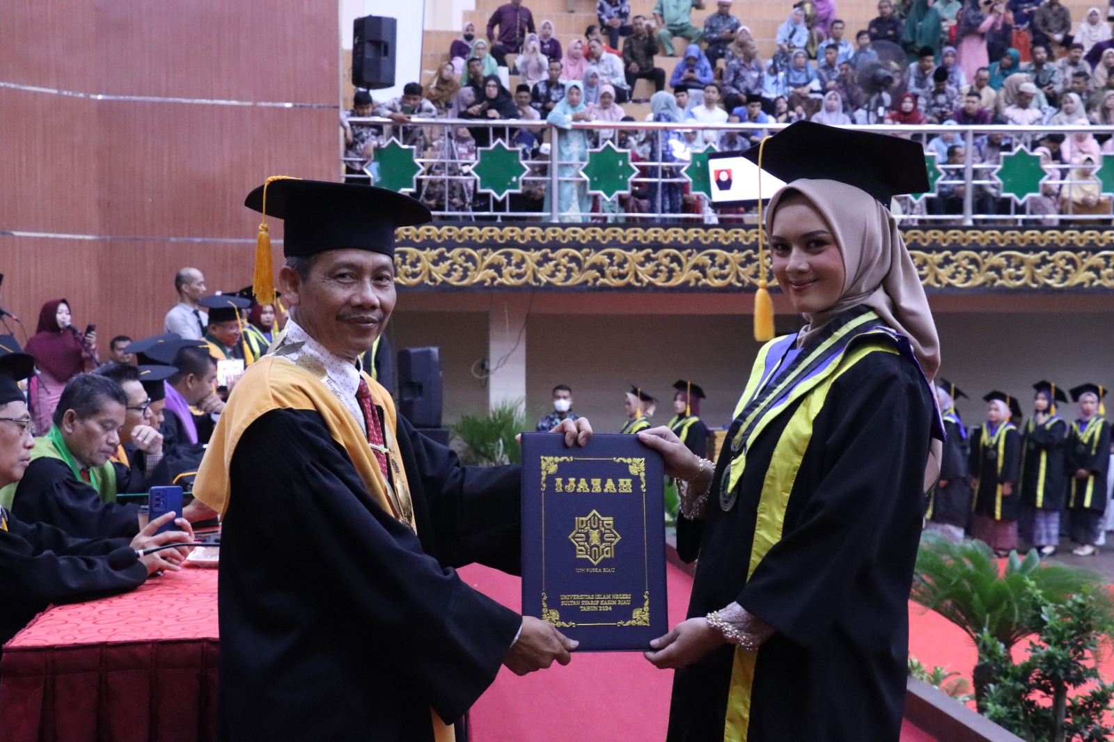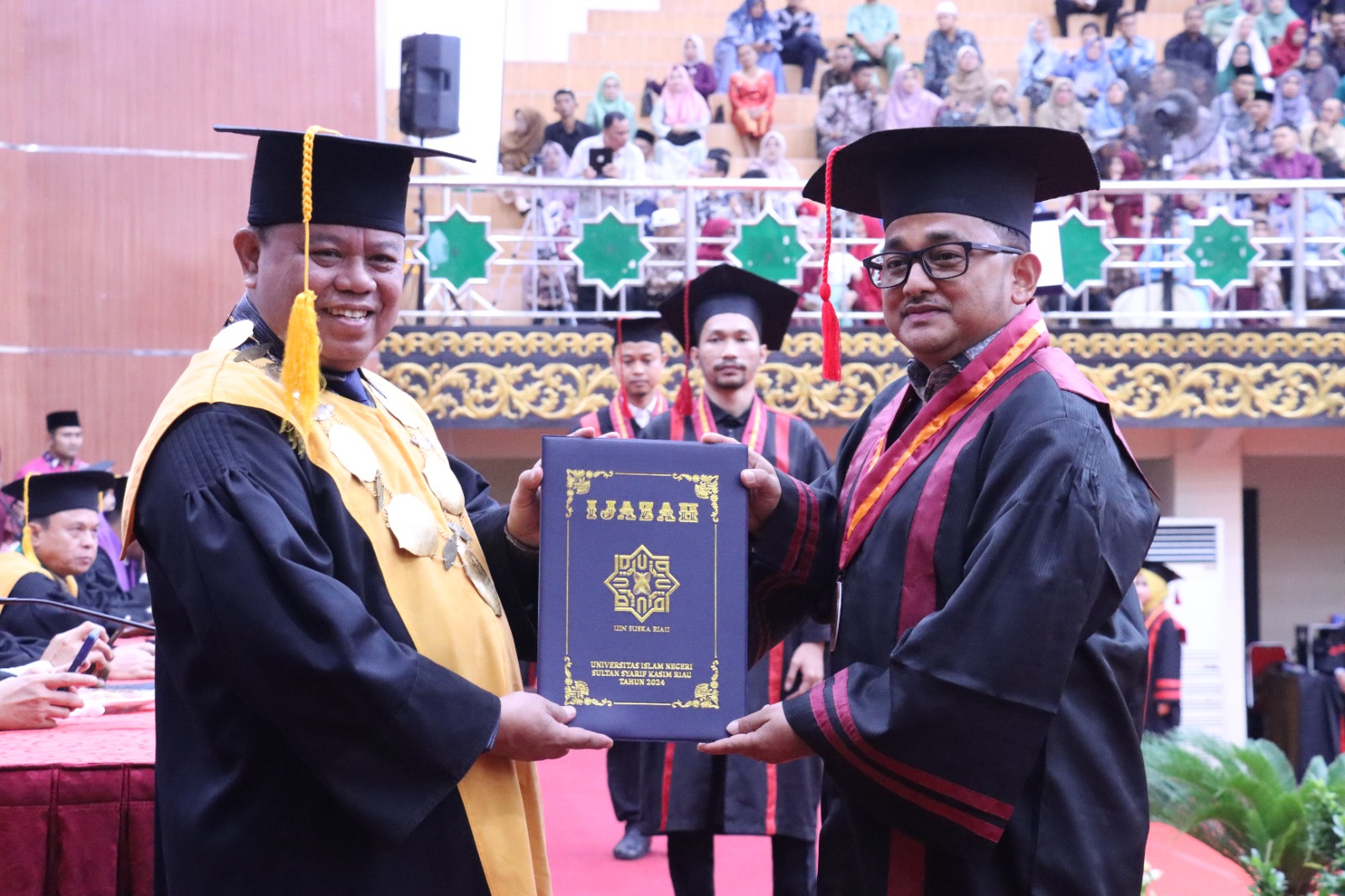 uin-suska.ac.id Bertempat di Gedung PKM (Pusat Kegiatan Mahasiswa) Kamis (22/02/2024) Rektor UIN Sultan Syarif Kasim Riau resmi mengukuhkan 600 wisudawan wisudawati Program Doktor ke-51, Program Magister ke -82, Program Sarjana dan Diploma ke-102 Periode IV Tahun Akademik 2024/2025. Sidang Senat Terbuka Universitas dibuka resmi oleh Ketua Senat Prof. Dr. Syamruddin Nasution, M.A. Kegiatan wisuda ini dihadiri oleh para Dekan Fakultas, Direktur Pascasarjana, Para Guru Besar dan Sekretaris serta Anggota senat UIN Sultan Syarif Kasim Riau.