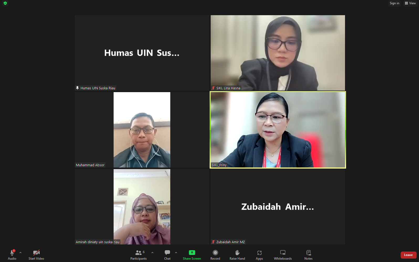 uin-suska.ac.id Pada Senin, 04 Maret 2024, Fakultas Tarbiyah dan Keguruan UIN Sultan Syarif Kasim Riau mengadakan Zoom Meeting dengan jajaran pimpinan Sekolah Indonesia Kuala Lumpur (SIKL). Pertemuan ini dihadiri oleh Wakil Dekan III Dr. Amirah Diniaty, M.Pd. Kons, Wakil Dekan II Prof. Dr. Hj. Zubaidah Amir MZ, M.Pd, Muhammad Absor, dan pimpinan SIKL. Diskusi diawali dengan penyampaikan rencana program, peluang dan persiapan-persiapan teknis untuk merealisasikan Memorandum of Agrement (MoA) antara Fakultas Tarbiyah dan Keguruan (FTK) UIN Sultan Syarif Kasim Riau dengan SIKL.