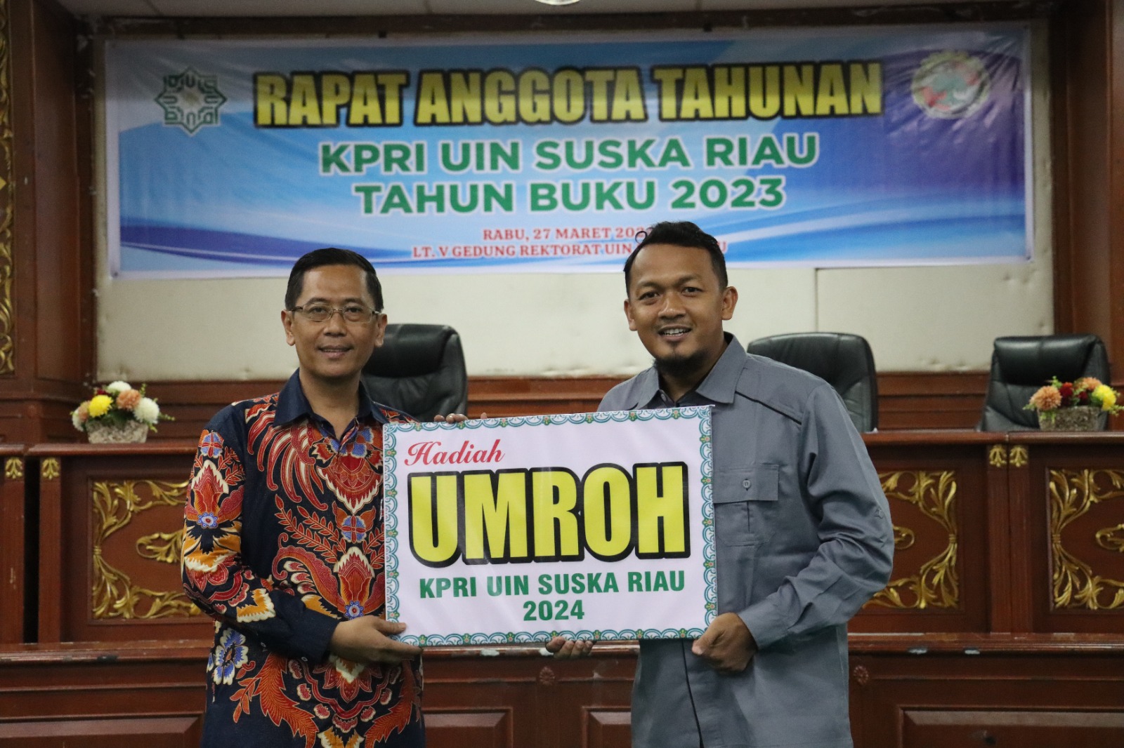 uin-suska.ac.id Koperasi Pegawai Republik Indonesia (KPRI) UIN Suska Riau kembali melaksanakan Rapat Anggota Tahunan (RAT) pada Rabu, 27 Maret 2024. Acara ini berlangsung di ruang Auditorium lantai V Gedung Rektorat, menjadi agenda wajib yang rutin dilaksanakan setiap tahun oleh KPRI UIN Suska Riau. Salah satu momen puncak dalam kegiatan ini adalah pembagian hadiah kepada anggota, di mana hadiah utamanya adalah pemberangkatan umroh ke Tanah Suci Mekah, khususnya untuk para Pegawai Negeri Sipil (PNS) di lingkungan UIN Suska Riau.