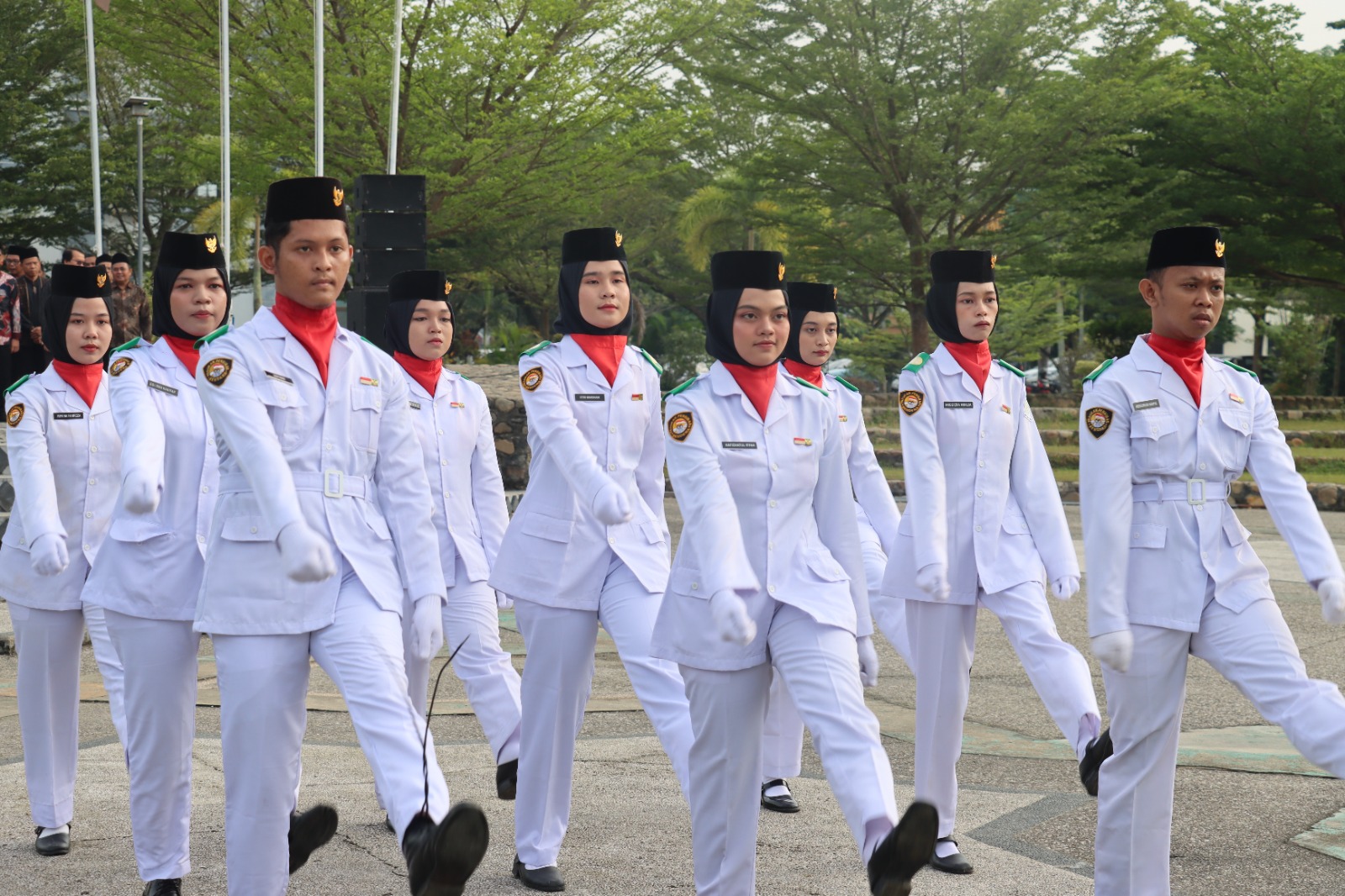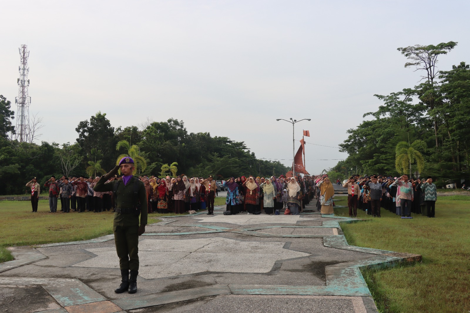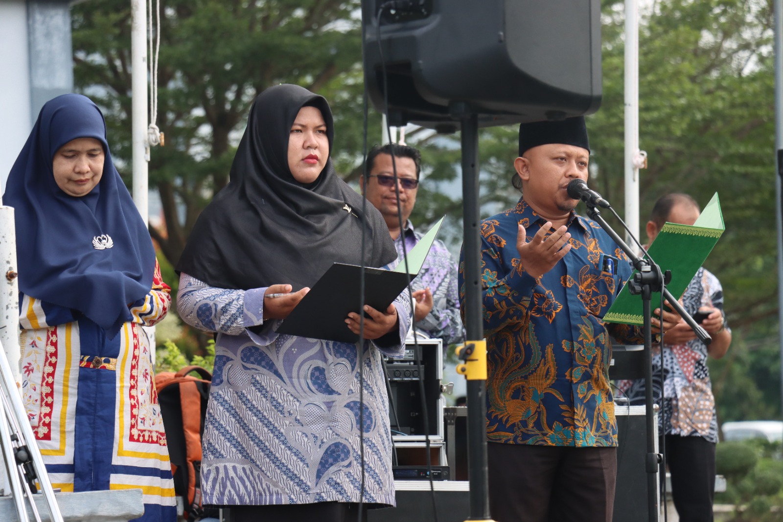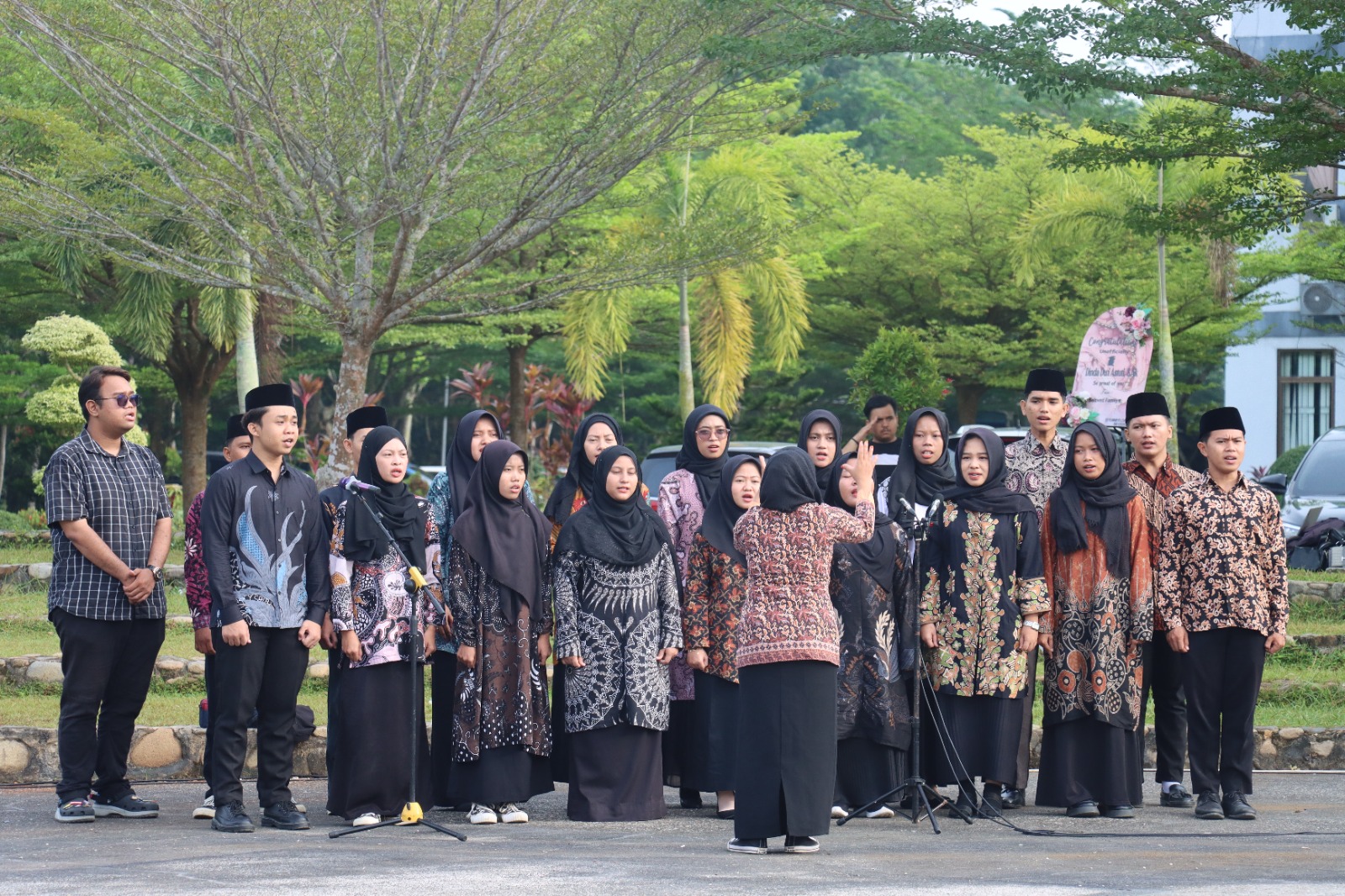 uin-suska.ac.id Universitas Islam Negeri Sultan Syarif Kasim Riau gelar Peringatan Hari Lahir Pancasila dengan upacara bendera di halaman Gedung Rektorat, Sabtu, 1 Juni 2024. Peringatan hari lahir Pancasila di Universitas Islam Negeri Sultan Syarif Kasim Riau di ikuti oleh Pimpinan, Dosen, Tenaga Kependidikan dan Mahasiswa berlangsung hikmat dengan Inspektur upacara Dr. H. Jamaluddin, M.Us dan semua peserta upacara memakai seragam batik sebagai bukti keanekaragaman budaya Indonesia.