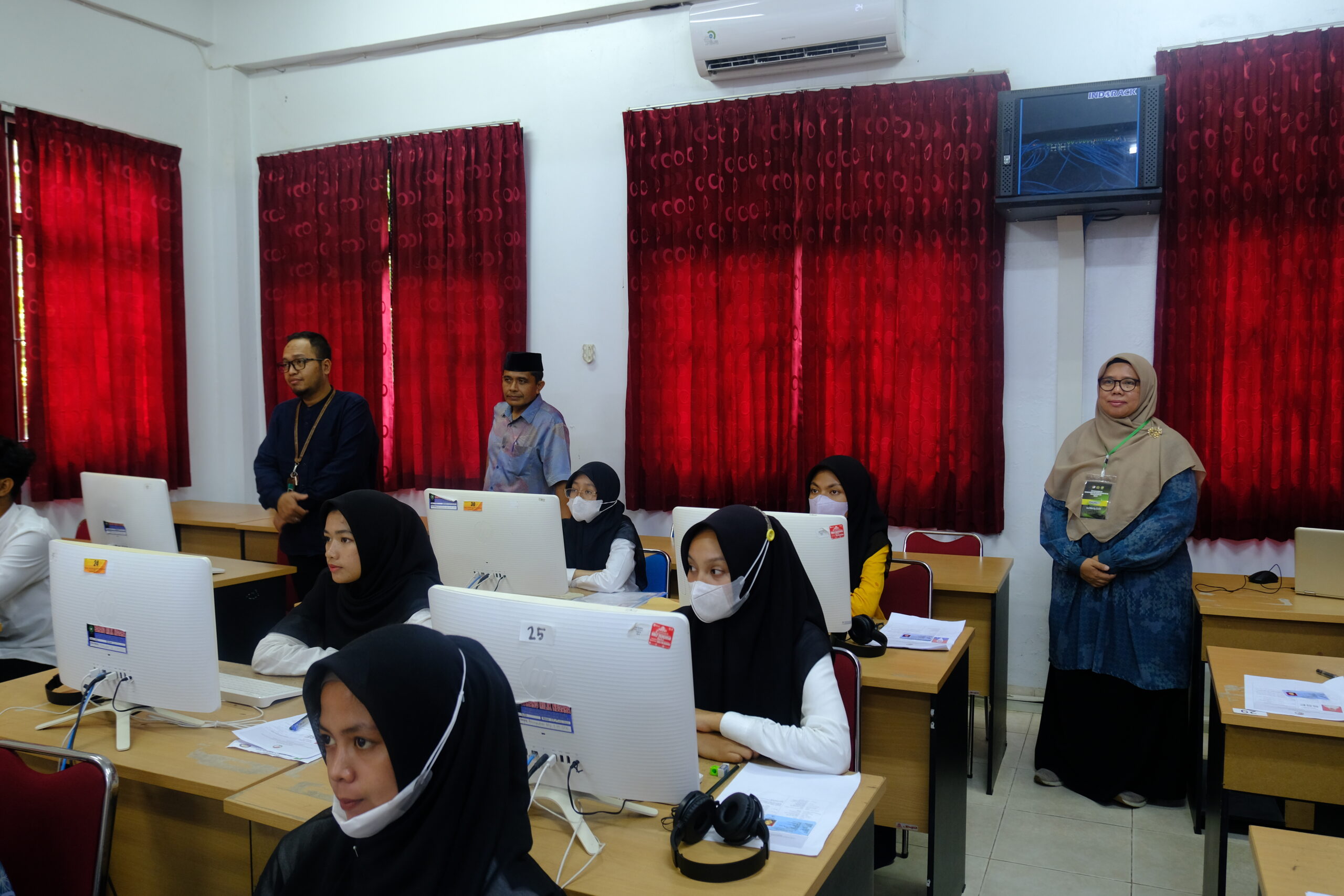 uin-suska.ac.id Pelaksanaan ujian masuk Penerimaan Mahasiswa Baru melalui jalur ujian Sistem Seleksi Elektronik (SSE) Ujian Masuk Perguruan Tinggi Keagamaan Islam Negeri (UM-PTKIN) tahun 2024 di Universitas Islam Negeri Sultan Syarif Kasim Riau mendapat kunjungan monitoring dan evaluasi dari Direktorat Jenderal Pendidikan Islam Kementerian Agama Republik Indonesia (Dirjen Pendis Kemenag RI) Rabu, 26 Juni 2024. Kegiatan monitoring dan evaluasi ini dilakukan pada seluruh ruangan, termasuk ruang penanggung jawab SSE UM-PTKIN dengan tujuan memastikan kesiapan perangkat dan sarana prasarana yang dipergunakan selama ujian. mencukupi dan berfungsi sebagaimana mestinya.