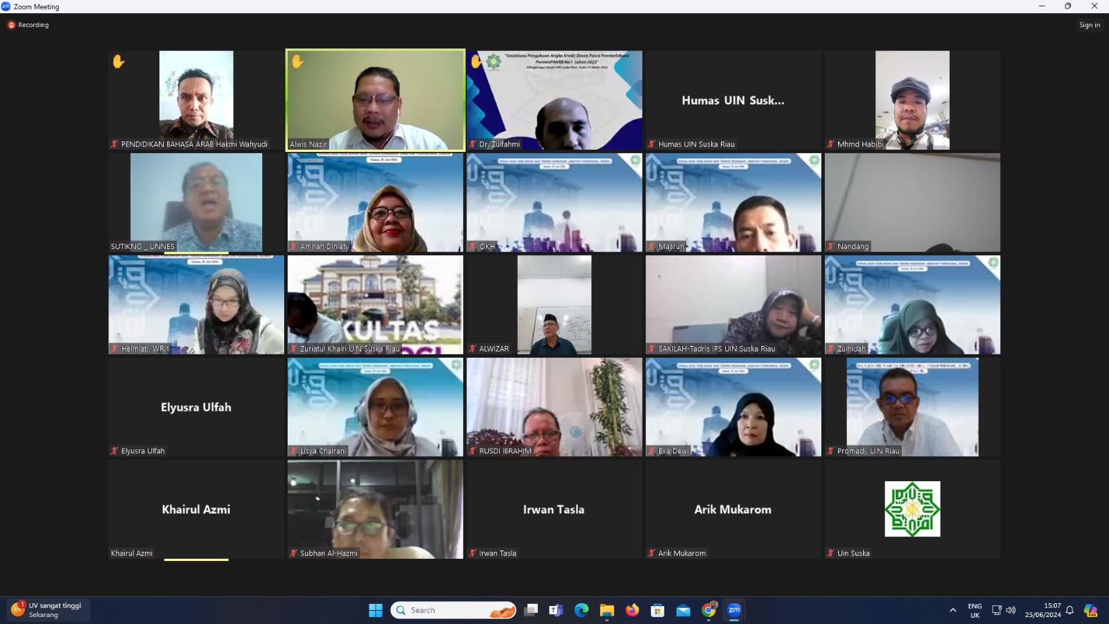 uin-suska.ac.id Sosialisasi kebijakan dan teknis kenaikan jabatan fungsional dosen tahun 2024 di lingkungan UIN Suska Riau telah sukses dilaksanakan melalui platform Zoom Meeting pada hari Selasa, 25 Juni 2024. Acara ini diadakan di ruang rapat pimpinan UIN Suska Riau dan dihadiri oleh seluruh dosen PNS, PPPK, dan Non-PNS.