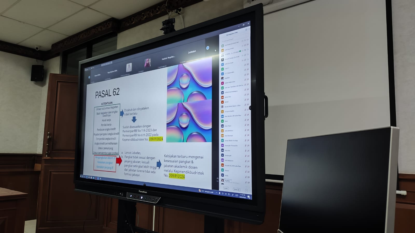 Acara sosialisasi ini juga dihadiri oleh Biro Administrasi Umum, Perencanaan, dan Keuangan (AUPK) serta staf dari bagian Kepegawaian UIN Suska Riau. Para peserta mendapatkan kesempatan untuk bertanya langsung terkait implementasi dan aplikasi dari kebijakan kenaikan jabatan fungsional ini dalam konteks sehari-hari di lingkungan kampus.