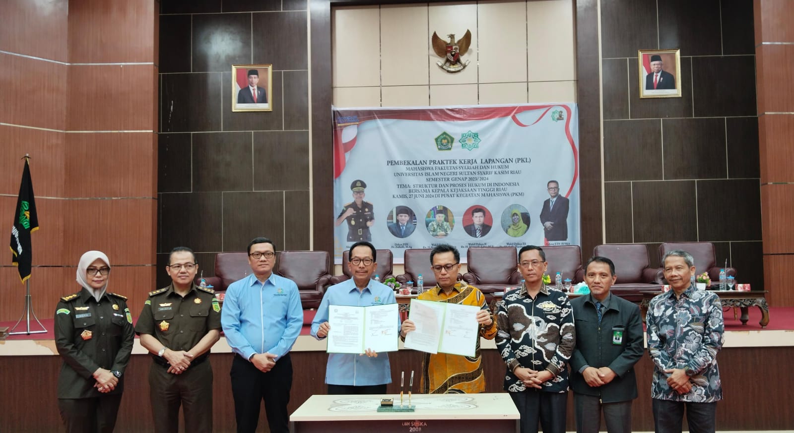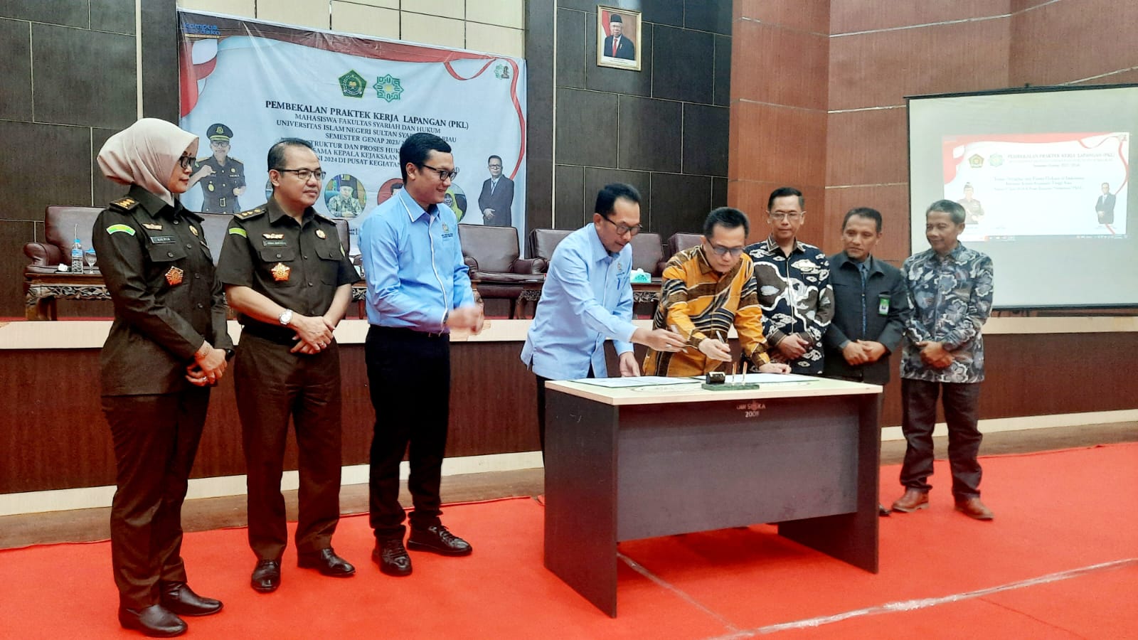 uin-suska.ac.id. Dalam rangka memperluas jaringan kerjasama bidang Tri Dharma Perguruan Tinggi dengan berbagai stakeholder, Universitas Islam Negeri Sultan Syarif Kasim Riau telah sukses melangsungkan prosesi penandatangan Memorandum of Understanding (MoU) dengan Kejaksaan Tinggi Riau (Kejati), bertempat di Gedung Pusat Kegiatan Mahasiswa (PKM), (Kamis, 27/06/2024). Jalinan kerja sama dengan Kejati Riau lebih terfokus pada pelaksanaan Tri Dharma Perguruan Tinggi serta penanganan masalah hukum bidang perdata, pidana dan tata usaha negara. Kegiatan penting yang ditaja oleh Fakultas Syariah dan Hukum ini juga melangsungkan peresmian “Rumah Restorative Justice” sebagai wadah bagi civitas akademika untuk berkonsultasi hukum kepada Jaksa. Selain itu, rumah Restorative Justice juga menjadi wadah menyelesaikan permasalahan hukum di lingkungan kampus yang dapat diselesaikan melalui perdamaian yang dimediasi oleh Jaksa.