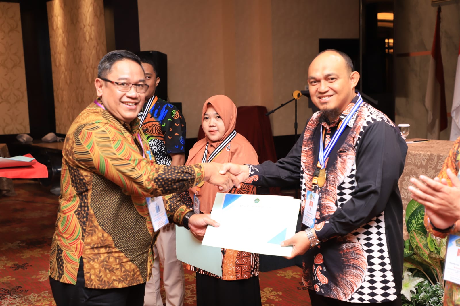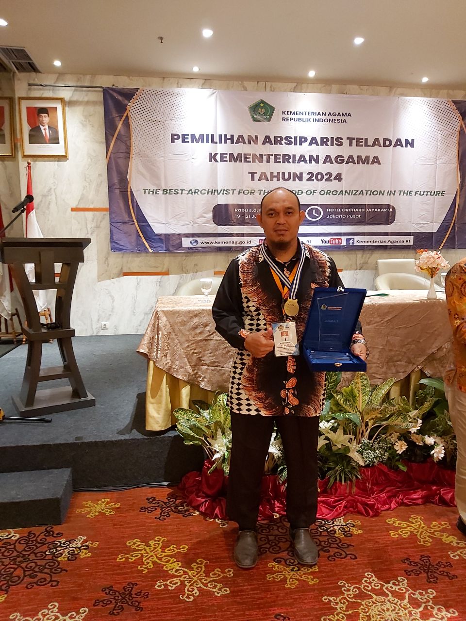 uin-suska.ac.id Hadi Saputra, S.E Arsiparis Ahli Muda pada Bagian Akademik Biro AAKK UIN Sultan Syarif Kasim Riau mengukir prestasi di tingkat Nasional sebagai Arsiparis Teladan Nasional Juara 1 Kategori Keahlian pada kegiatan pemilihan Arsiparis teladan Tahun 2024 yang dilaksanakan oleh Biro Umum a.n Sekretaris Jenderal Kementerian Agama pada tanggal 19 – 21 Juni 2024 di Orchardz Hotel Jayakarta, Jakarta Pusat. Sebelum melaksanakan kegiatan test wawancara, presentasi makalah, dan praktik pemberkasan proses pemilihan dilaksanakan terlebih dahulu dengan pendaftaran dan penilaian administrasi peserta serta ujian tertulis pada tanggal 6 Juni 2024. Kegiatan pemilihan Arsiparis teladan nasional ini merupakan kegiatan rutin di Kementerian Agama satu kali dalam dua tahun. Pemenang Arsiparis teladan ini akan mewakili Kementerian Agama untuk mengikuti pemilihan Arsiparis Teladan tingkat Nasional yang dilaksanakan oleh ANRI (Arsip Nasional Republik Indonesia) pada tahun 2025, dengan demikian Hadi Saputra, SE ini akan mewakili Kementerian Agama untuk pemilihan Arsiparis Teladan Tingkat Nasional pada tahun 2025.