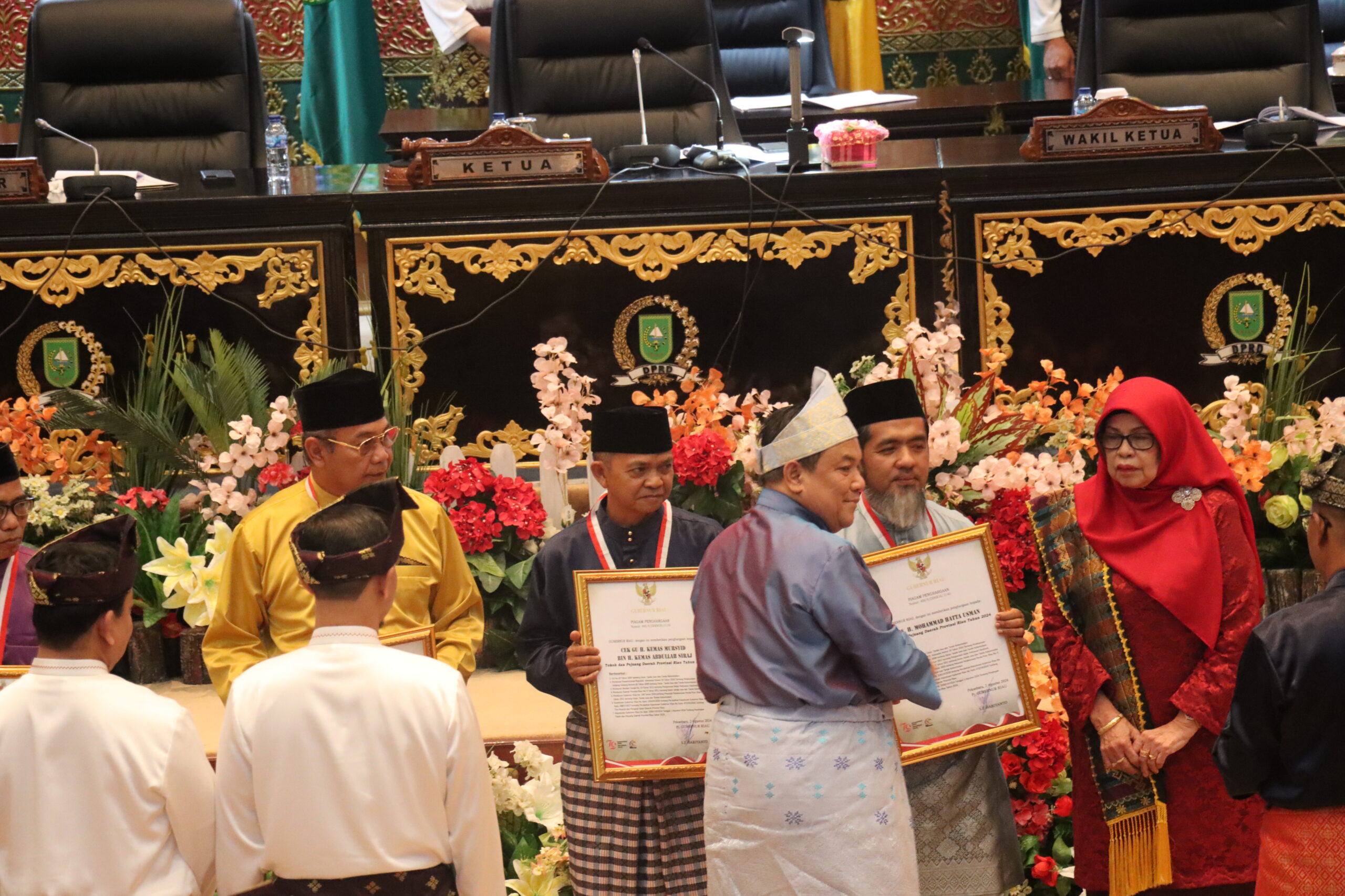 Peringatan Hari Jadi ke-67 Provinsi Riau Alumni UIN Suska, Drs. H. Mohammad Hatta Usman, Dianugerahi Gelar Tokoh Pejuang Daerah, Penghargaan Diterima oleh Putranya Dr. Khairil Anwar MA